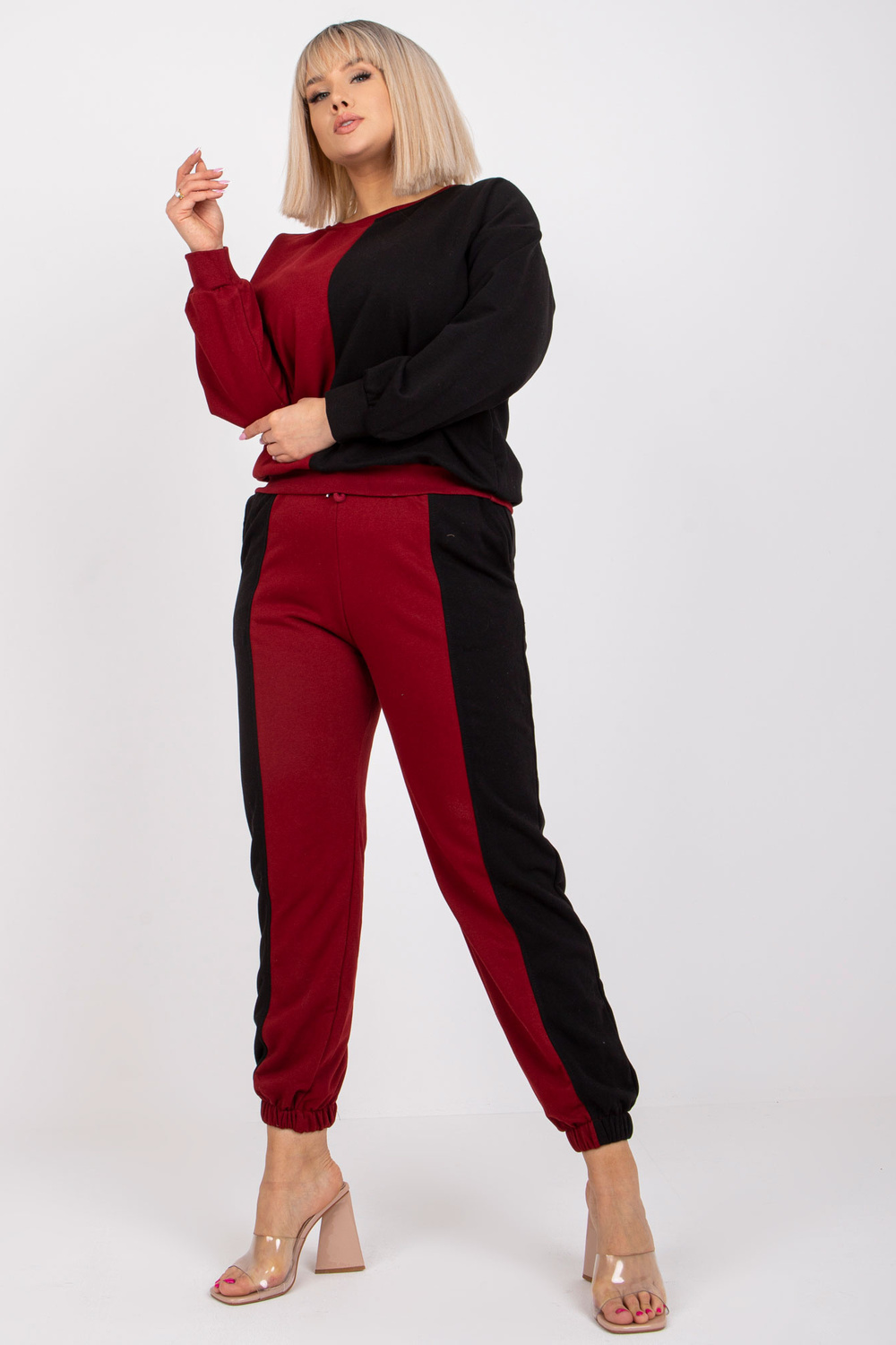 Burgundyblack liela izmēra sporta tērpa komplekts no Amishi kokvilnas.