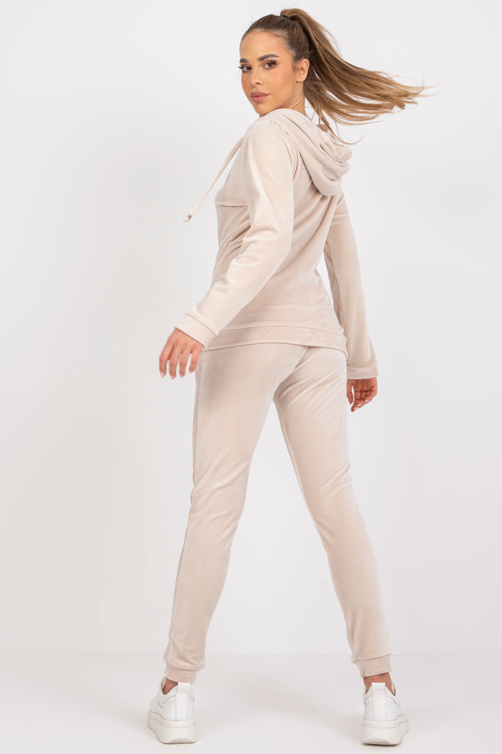 Gaiši bēšs velūra komplekts ar Ilaria kapuci.