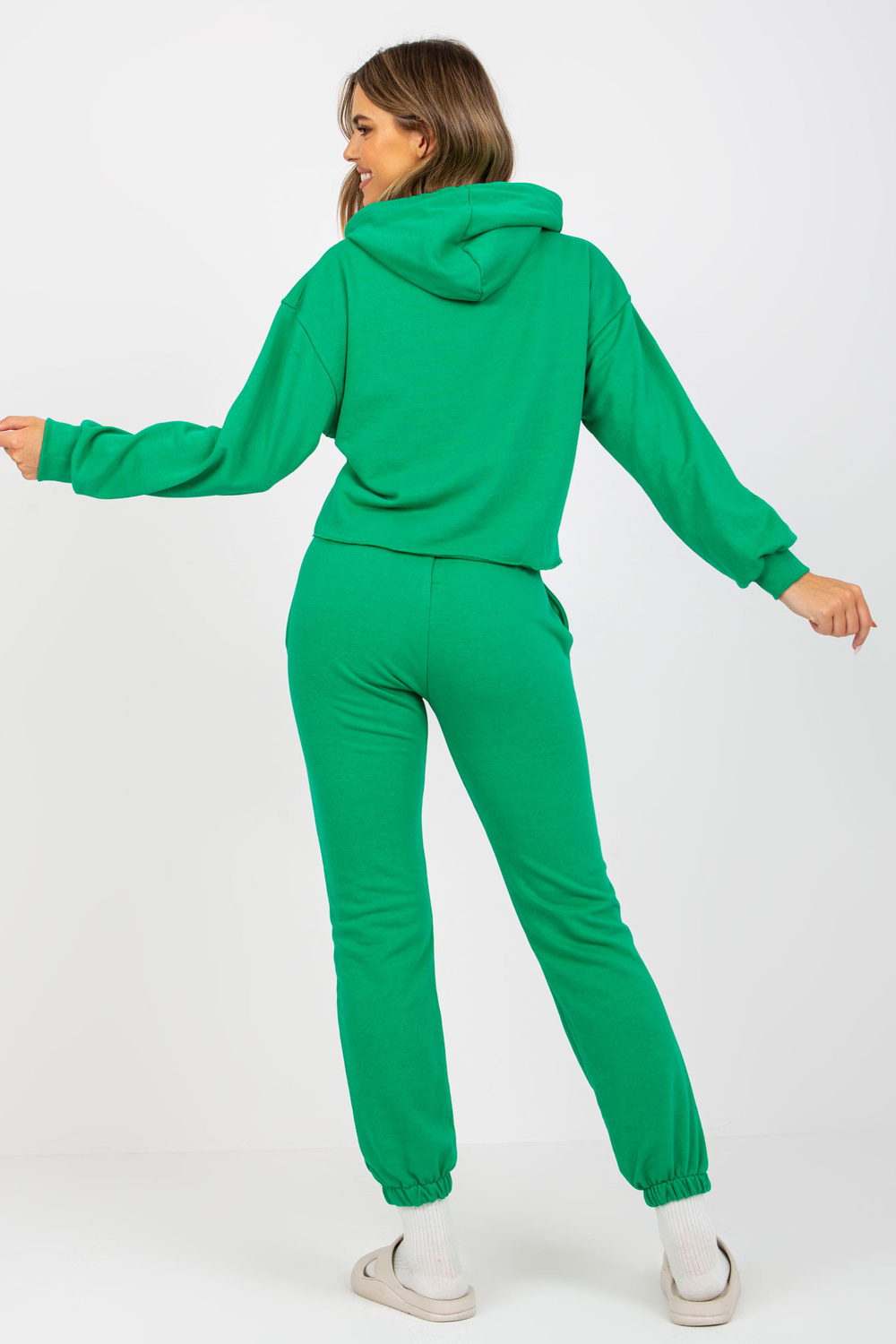 Zaļš divdaļīgs treniņtērpa komplekts ar apdruku .