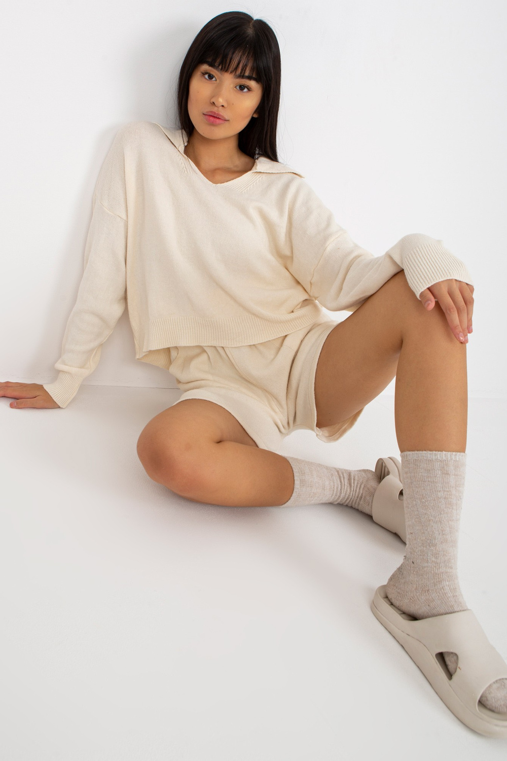 Ecru divdaļīgs ikdienas trikotāžas komplekts.