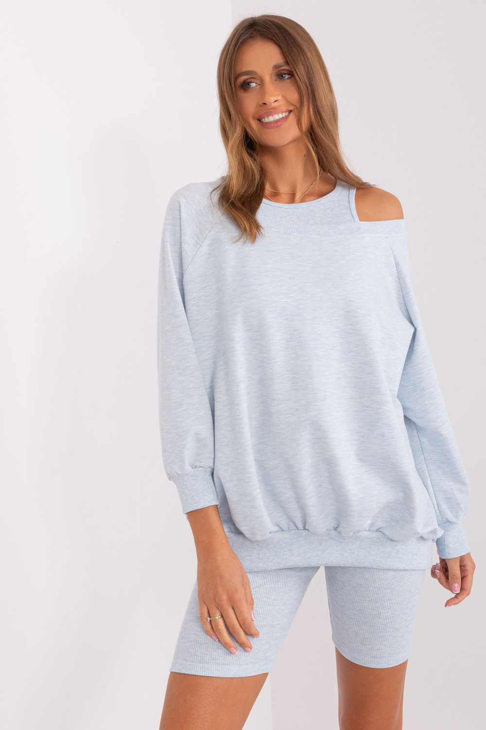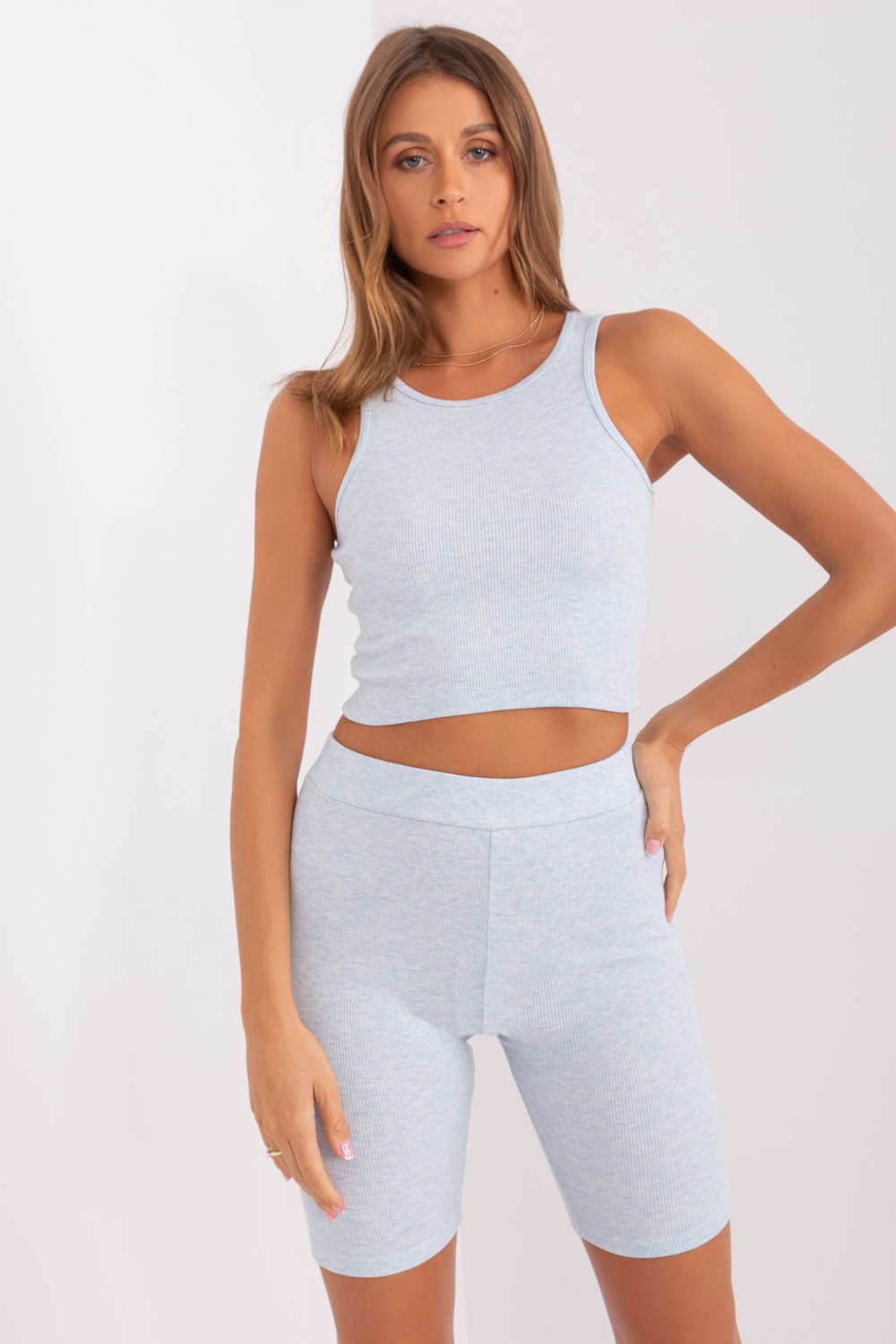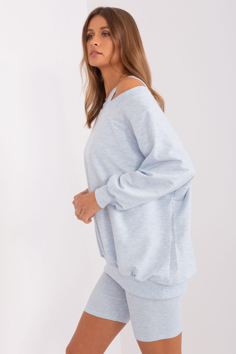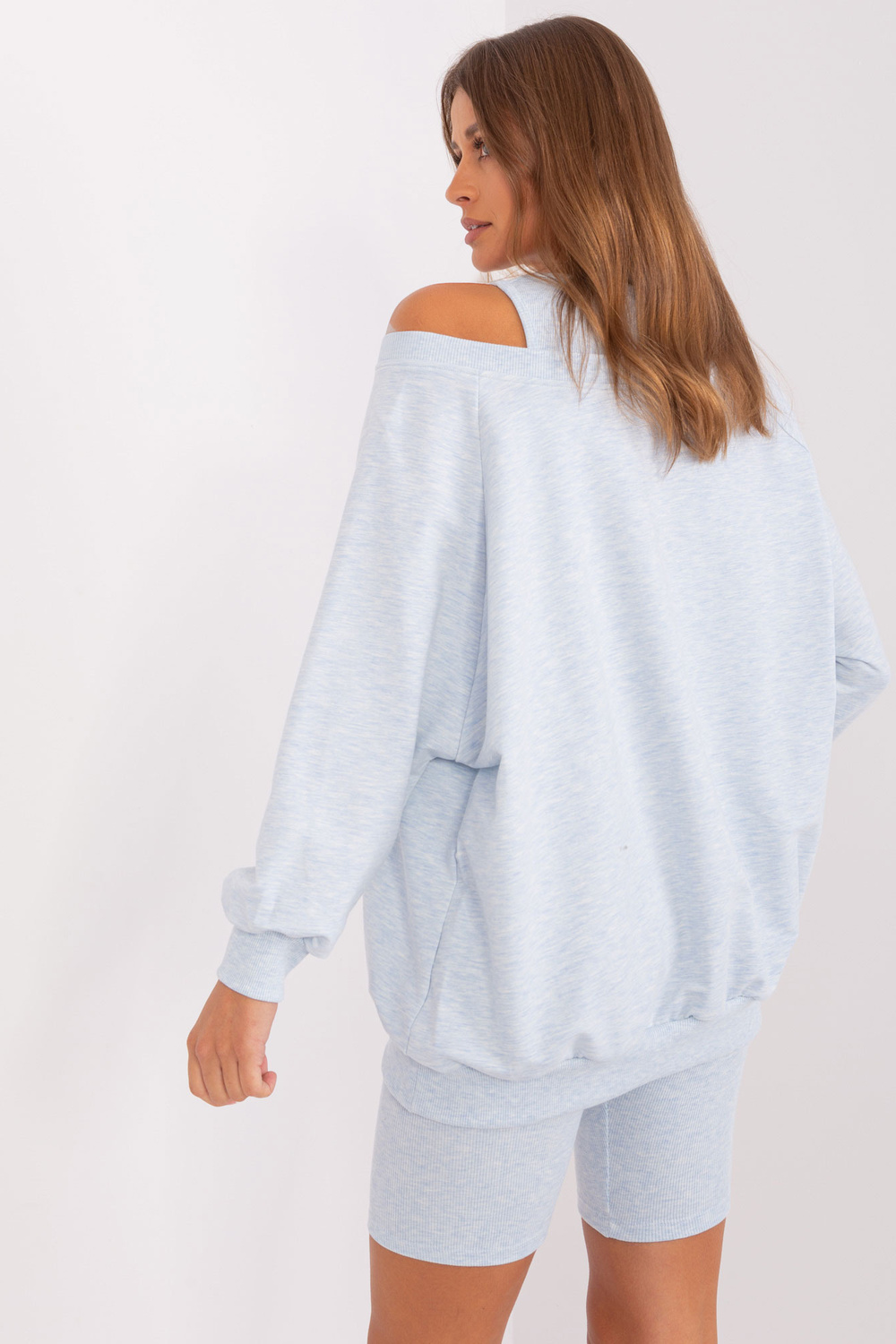 Komplekta izmēri viena izmēra izmērā, mērot plakanā: sporta krekla platums zem rokas - 69 cm, piedurknes garums - 56 cm, sporta krekla garums - 68 cm, augšdaļas platums zem rokām - 32 cm, augšdaļas garums - 41 cm, vidukļa platums - 30 cm, bikera garums - 46 cm.