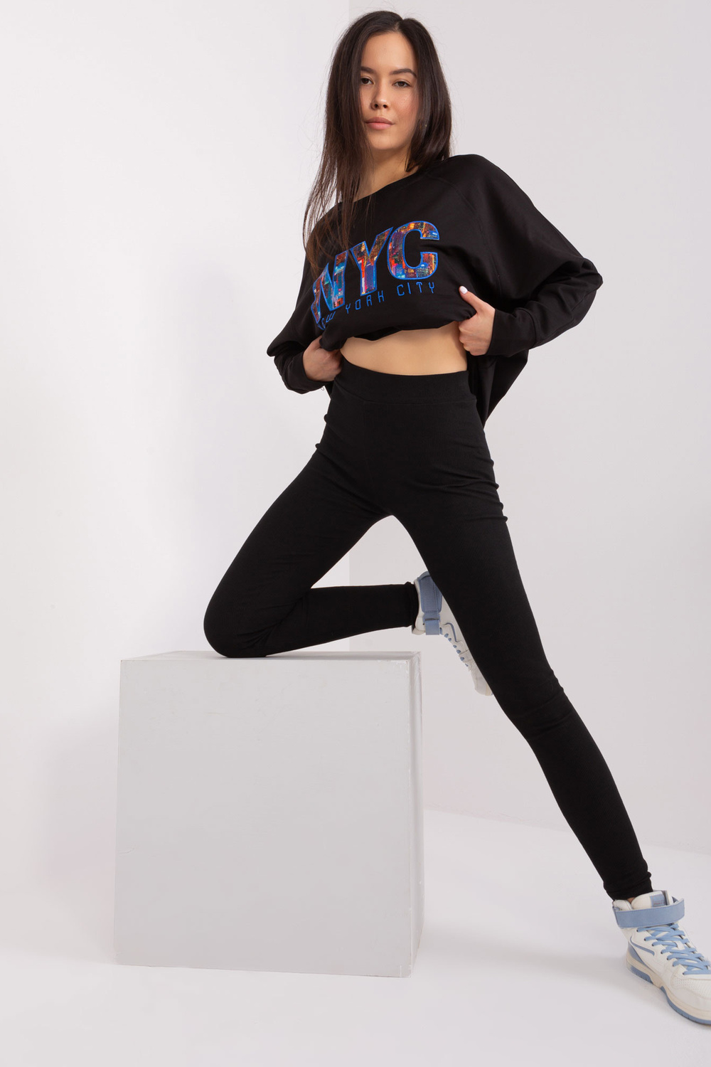 Melns ikdienas komplekts ar lielizmēra sporta kreklu .