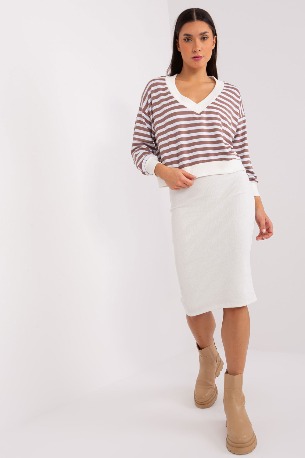 Brūna un ekru sieviešu pamata komplekts ar midi kleitu .