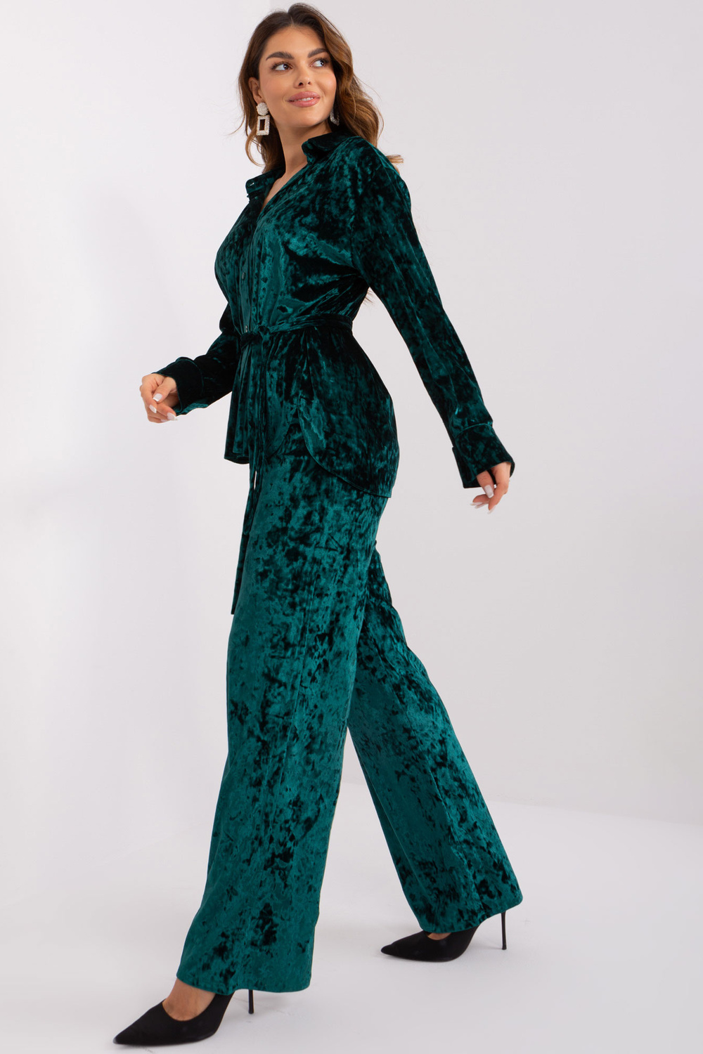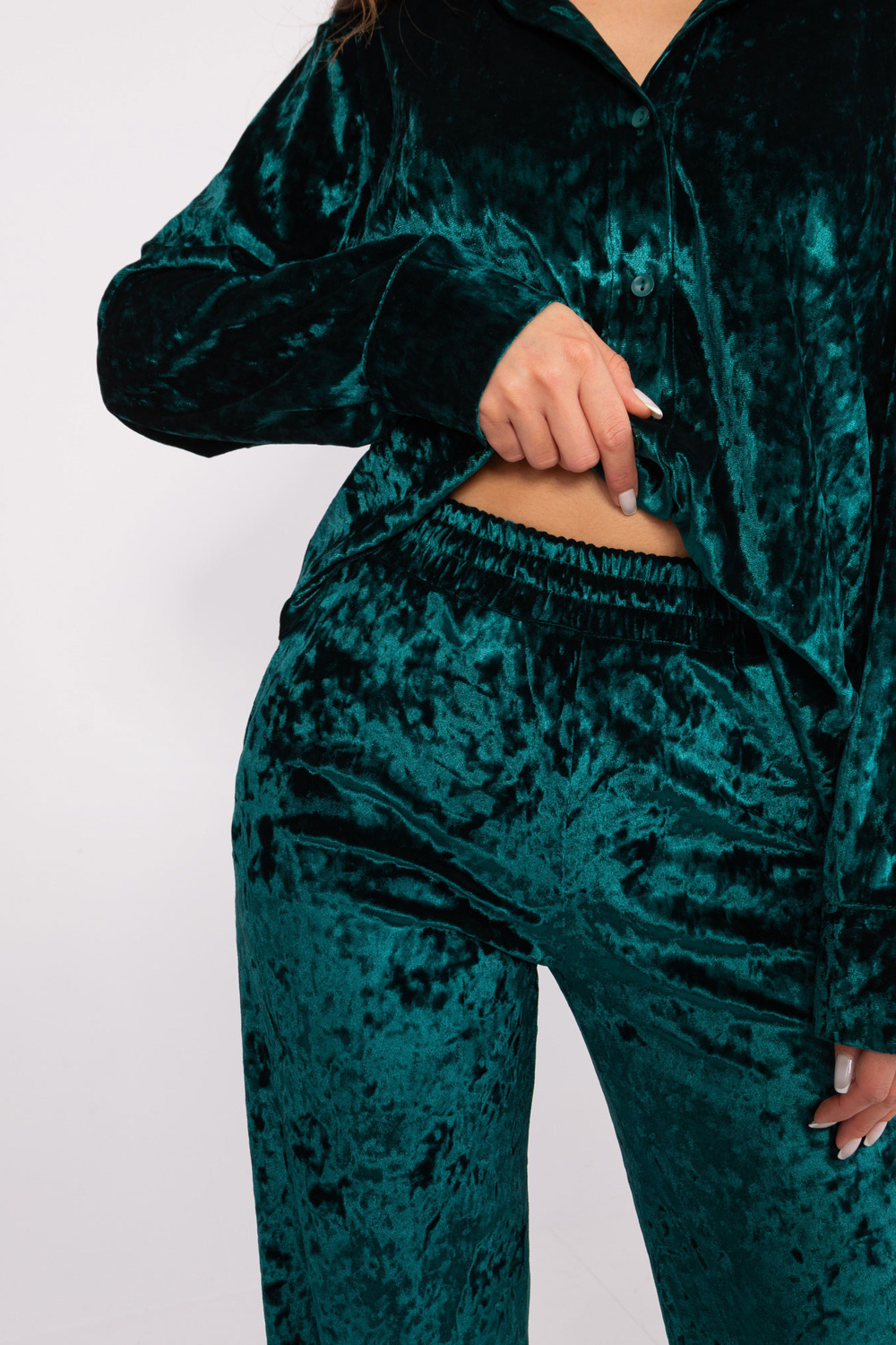 Komplekta izmēri S/M izmērā, mērot plakanu: krekla platums zem padusēm - 58 cm, piedurkņu garums - 60 cm, krekla garums - 70 cm, bikšu vidukļa platums - 31 cm, vidukļa augstums - 34 cm, bikšu garums - 110 cm.
