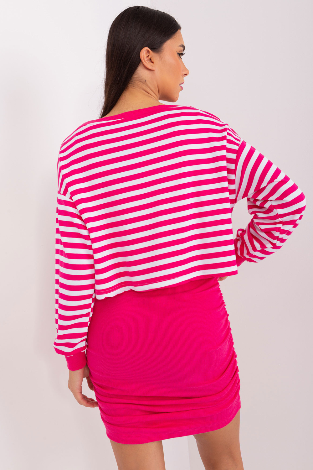 Fuksijas un balts pamata komplekts ar volānu kleitu .