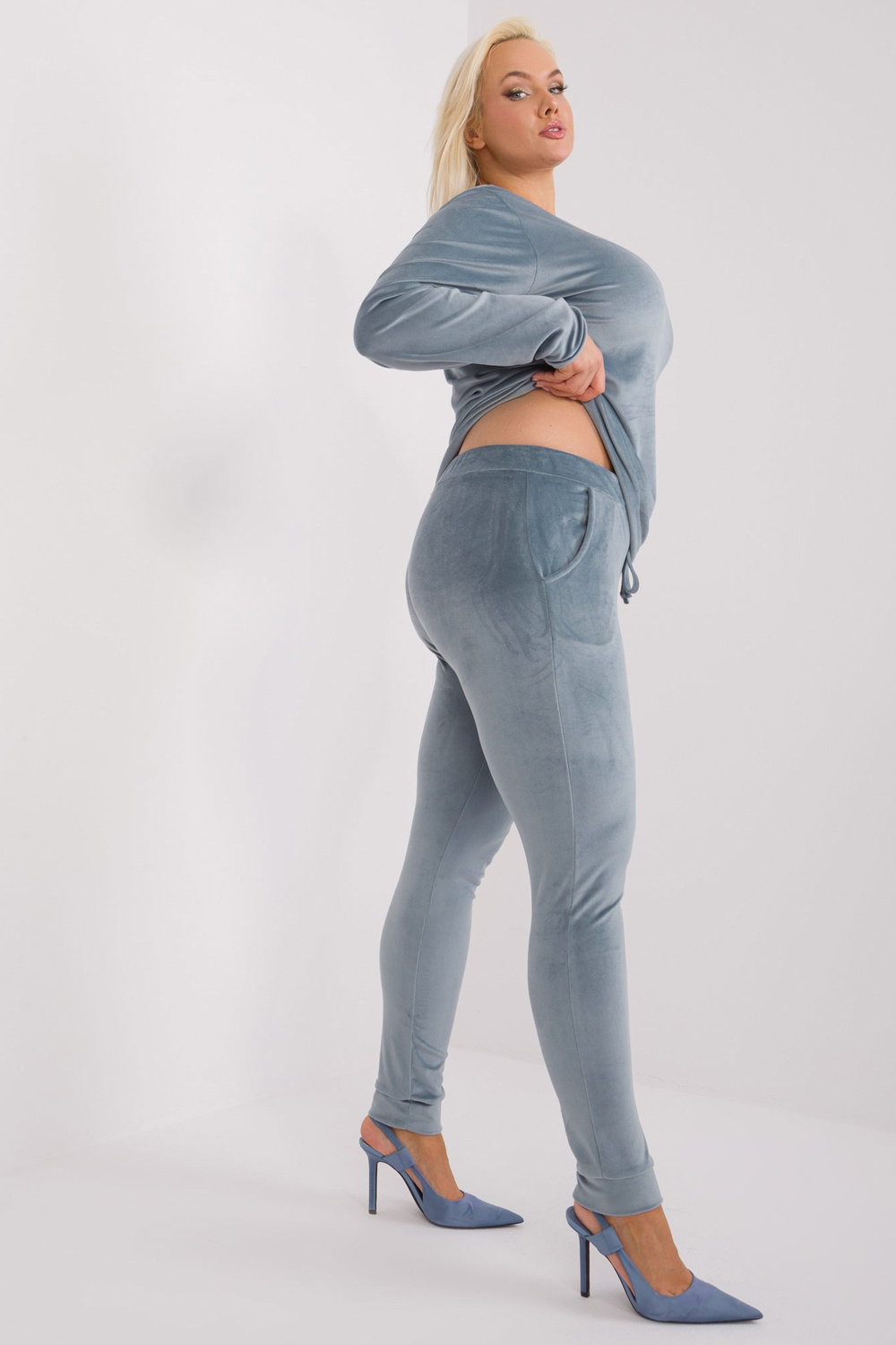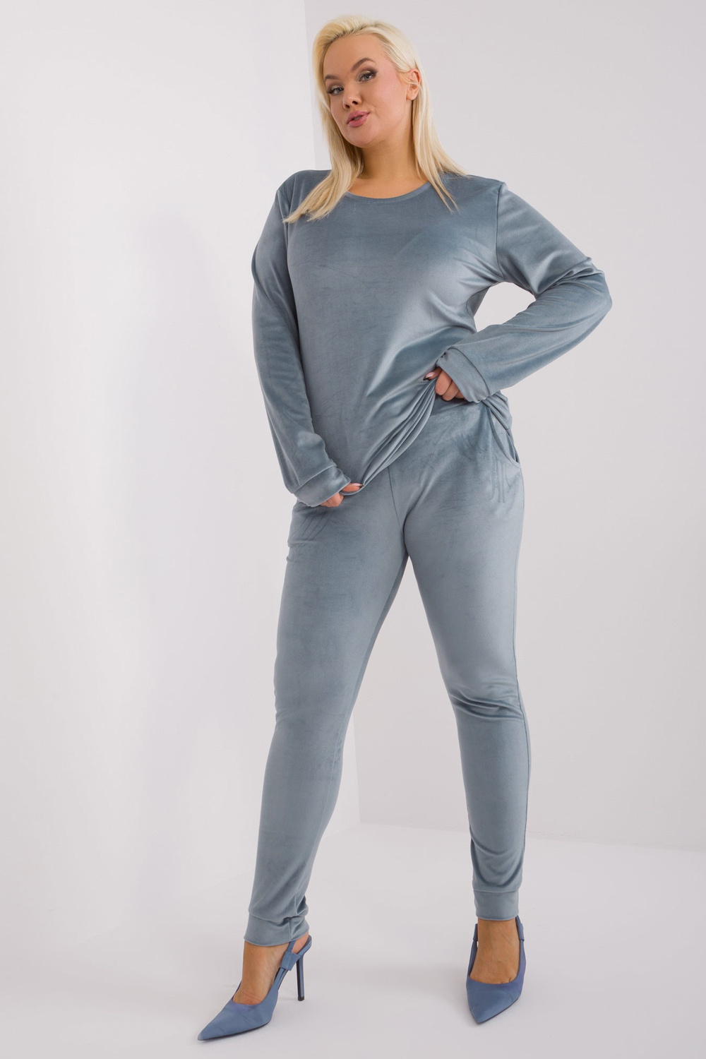 Komplekta izmēri 2XL izmērā, mērot plakanu: paduses platums - 54 cm, džempera garums - 65 cm, piedurknes garums - 64 cm, vidukļa platums - 42 cm, bikšu garums - 103 cm.