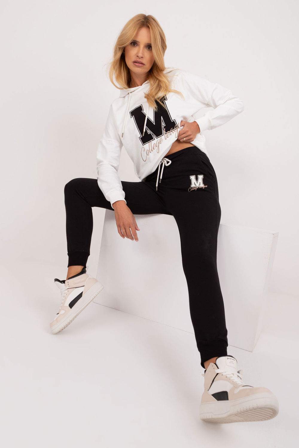 Komplekta izmēri S/M izmērā, mērot plakaniski: sporta krekla platums zem rokām - 62 cm, piedurknes garums - 58 cm, džempera garums - 56 cm, bikšu platums jostasvietā - 35 cm, vidukļa augstums - 29 cm, bikšu garums - 92 cm.
