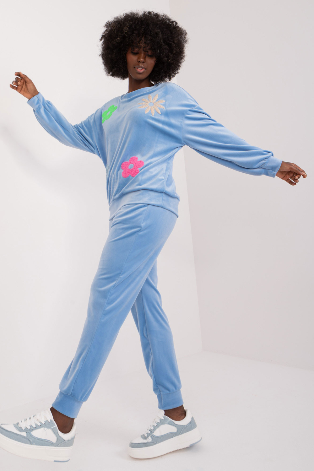 Komplekta izmēri vienā izmērā, mērot plakaniski: sporta krekla platums zem rokām - 57 cm, džempera garums - 57 cm, piedurknes garums - 53 cm, vidukļa platums - 37 cm, bikšu garums - 95 cm, vidukļa augstums - 31 cm