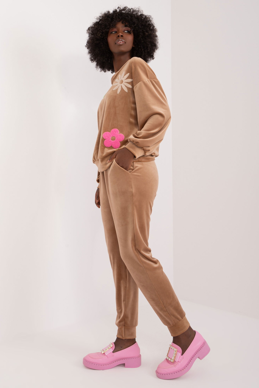 Komplekta izmēri vienā izmērā, mērot plakaniski: sporta krekla platums zem rokām - 57 cm, džempera garums - 57 cm, piedurknes garums - 53 cm, vidukļa platums - 37 cm, bikšu garums - 95 cm, vidukļa augstums - 31 cm