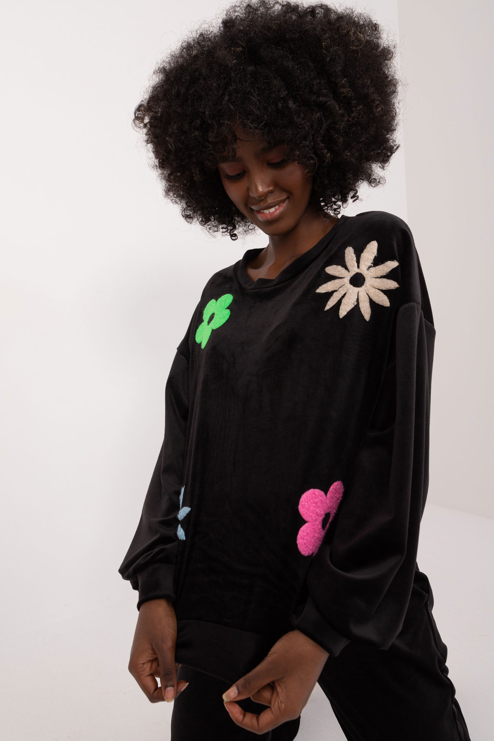 Modele valkā viena izmēra izmēru. Modeles izmēri: augums 168 cm, krūtis 82 cm, viduklis 62 cm, gurni 93 cm.