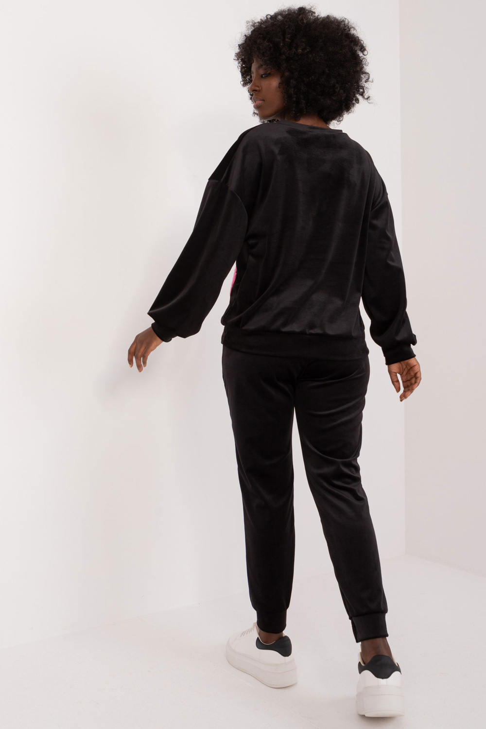 Komplekta izmēri vienā izmērā, mērot plakaniski: sporta krekla platums zem rokām - 57 cm, džempera garums - 57 cm, piedurknes garums - 53 cm, vidukļa platums - 37 cm, bikšu garums - 95 cm, vidukļa augstums - 31 cm