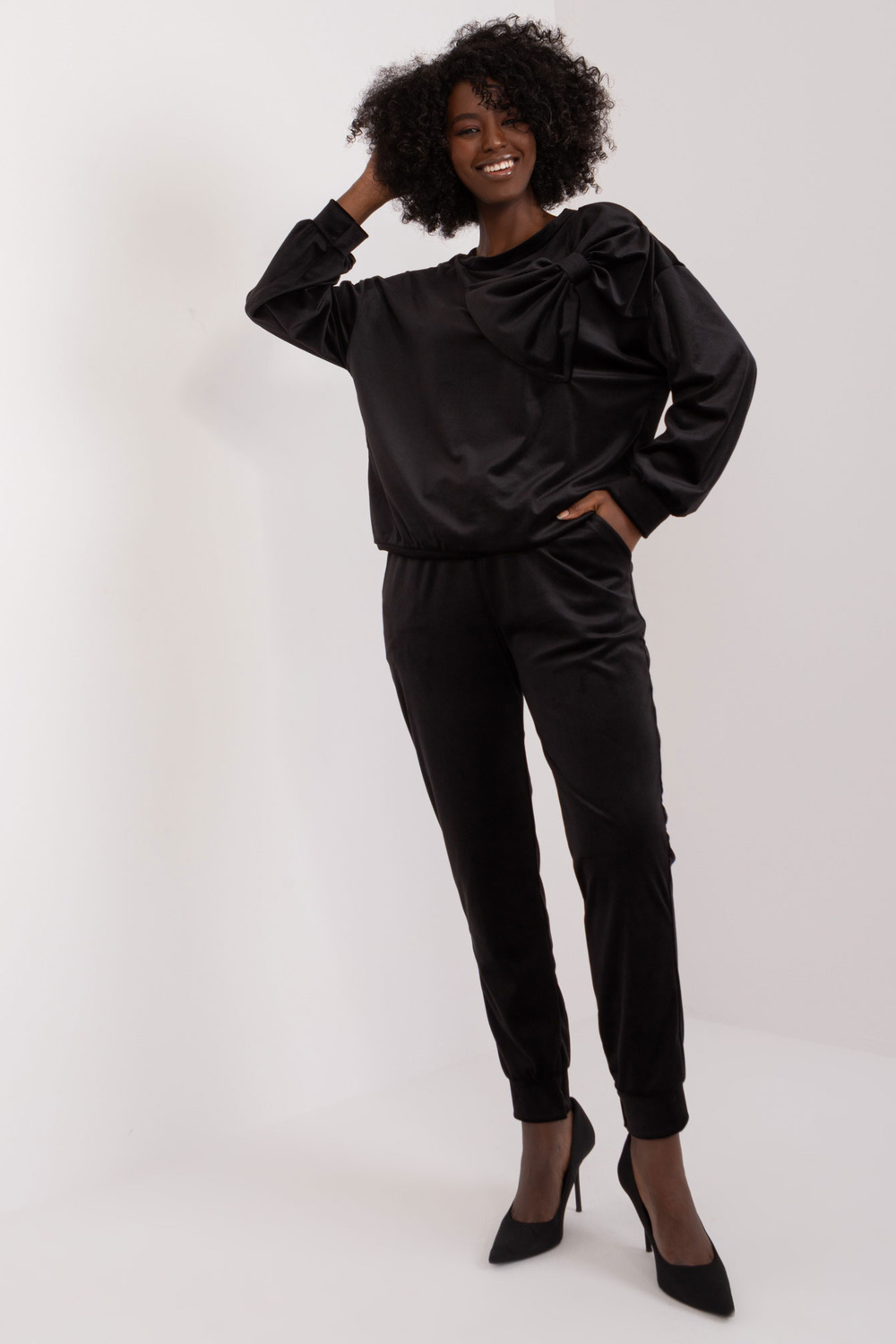 Komplekta izmēri vienā izmērā, mērot plakanu: sporta krekla platums zem rokām - 56 cm, džempera garums - 62 cm, piedurknes garums - 56 cm, vidukļa platums - 37 cm, bikšu garums - 94 cm, vidukļa augstums - 30 cm