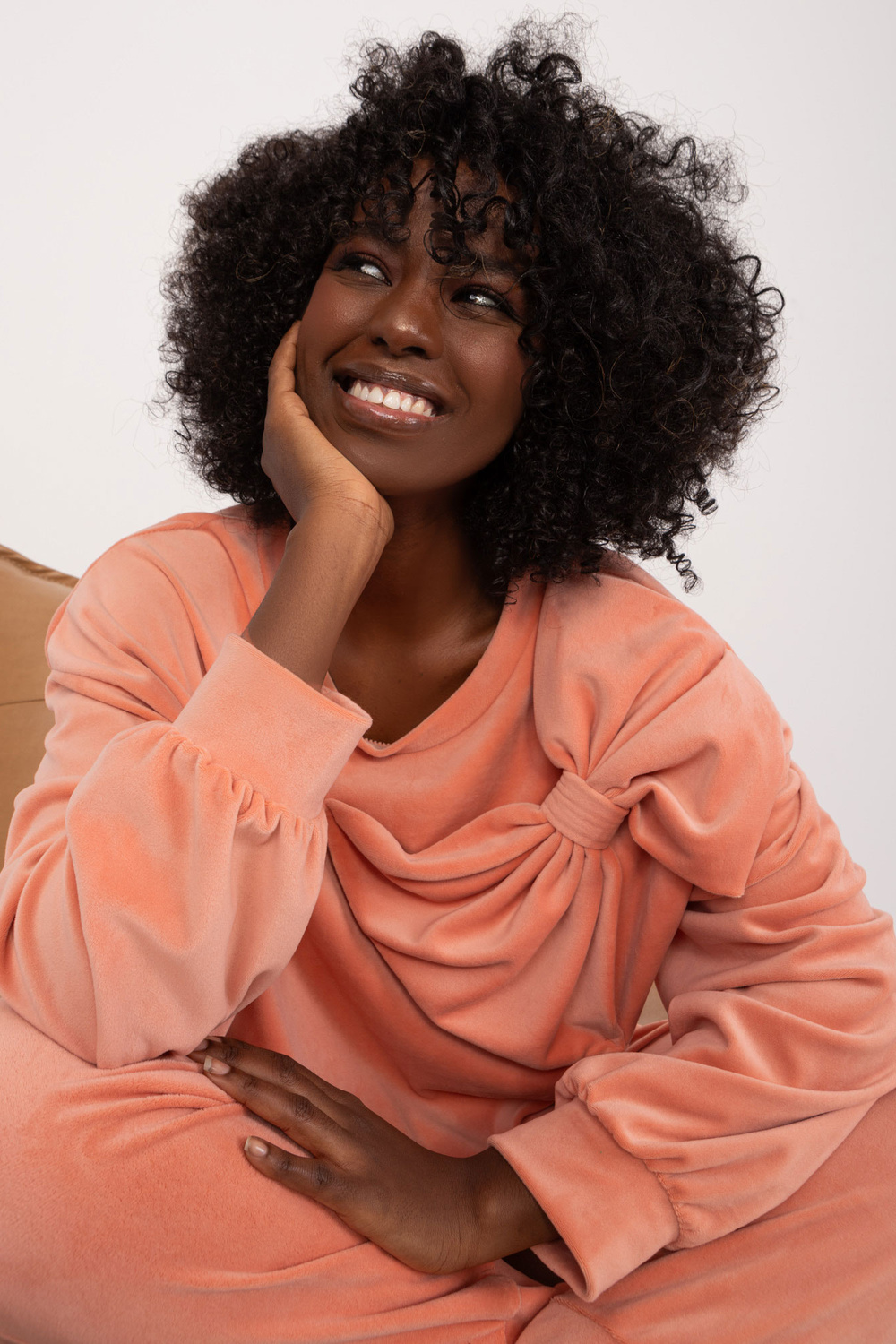 Modele valkā viena izmēra izmēru. Modeles izmēri: augums 168 cm, krūtis 82 cm, viduklis 62 cm, gurni 93 cm.
