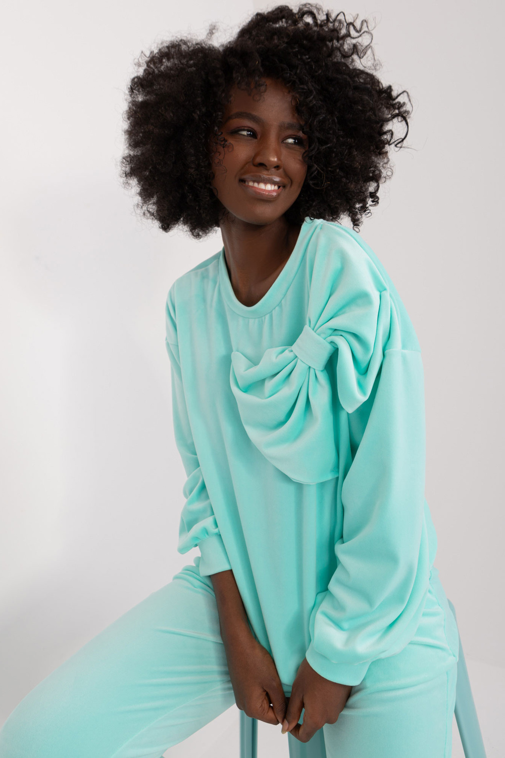 Komplekta izmēri vienā izmērā, mērot plakanu: sporta krekla platums zem rokām - 56 cm, džempera garums - 62 cm, piedurknes garums - 56 cm, vidukļa platums - 37 cm, bikšu garums - 94 cm, vidukļa augstums - 30 cm