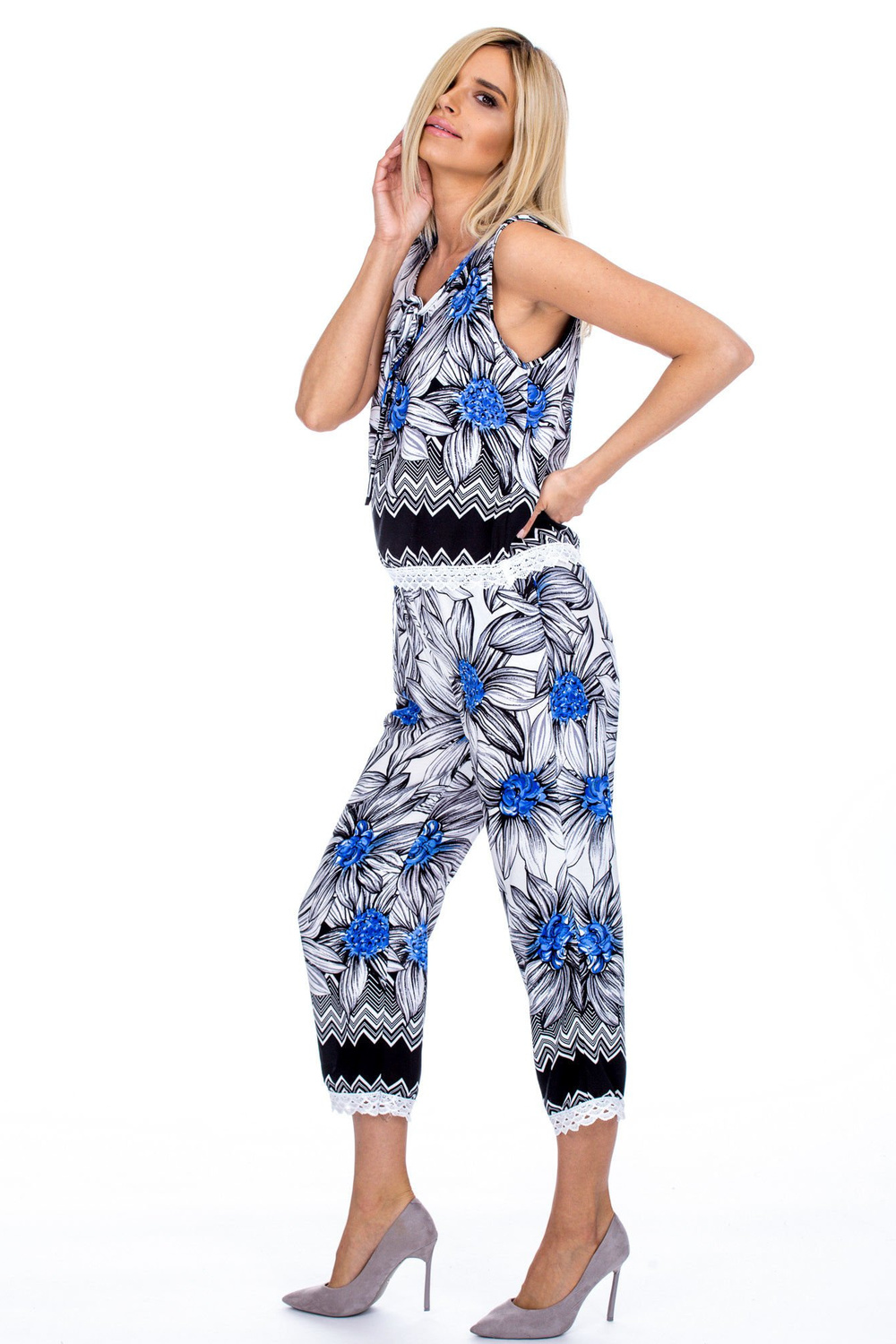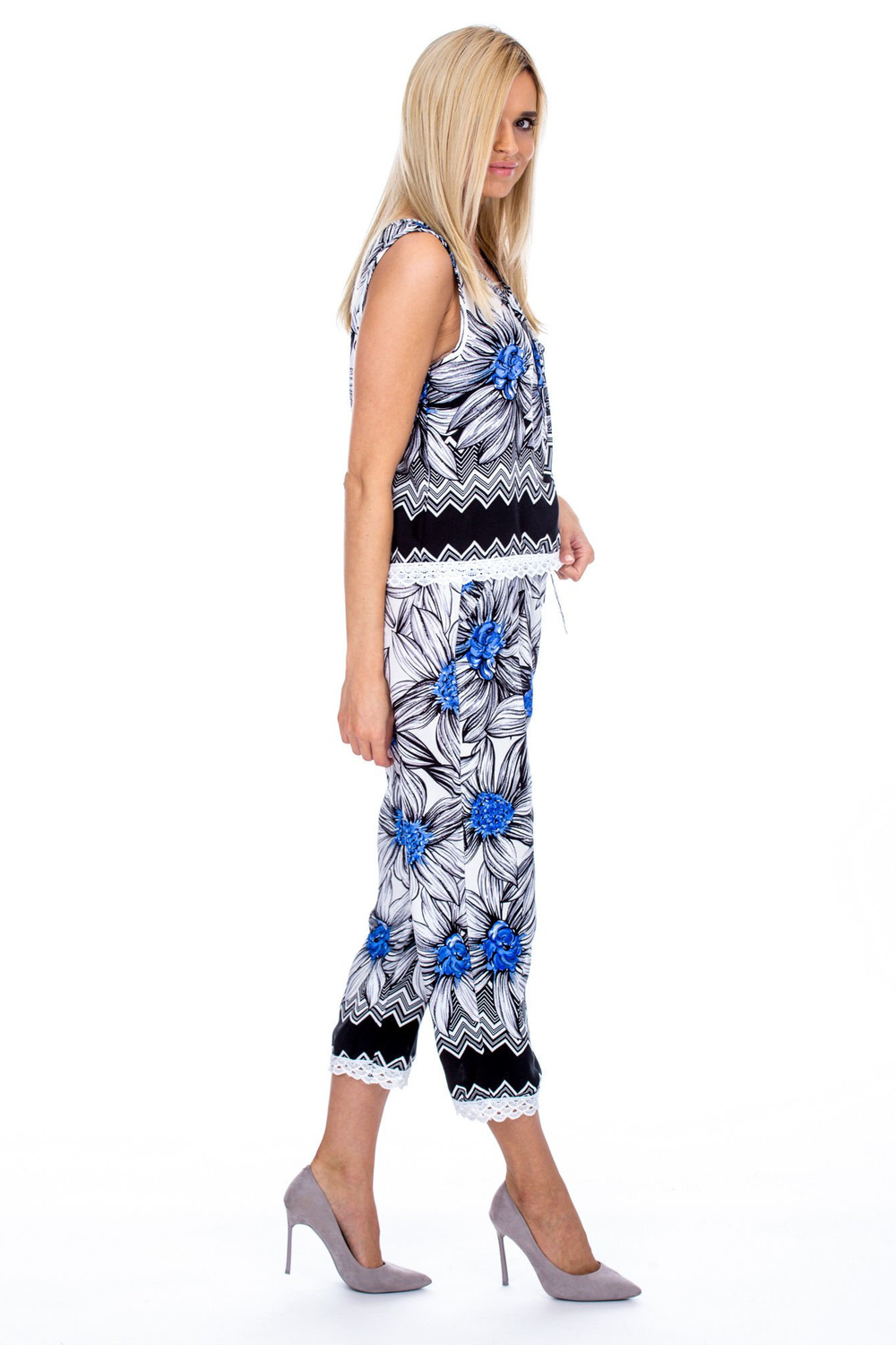 Melns un zils tops un bikšu Komplekts ar krāsainiem rakstiem .