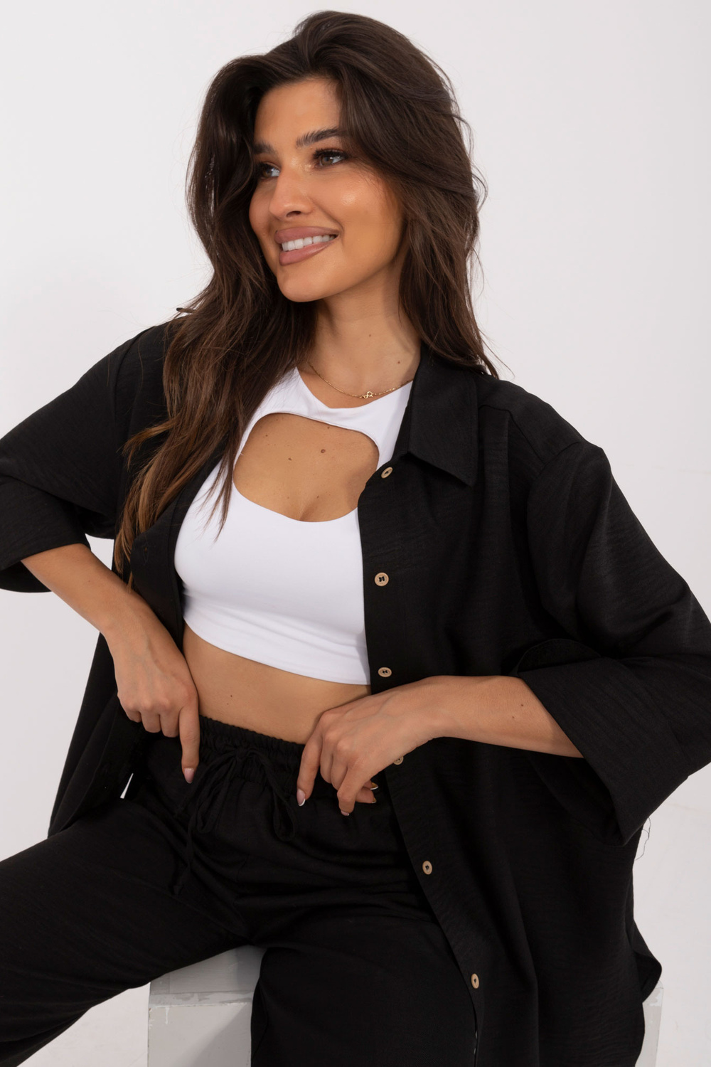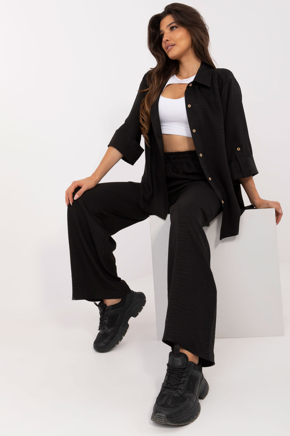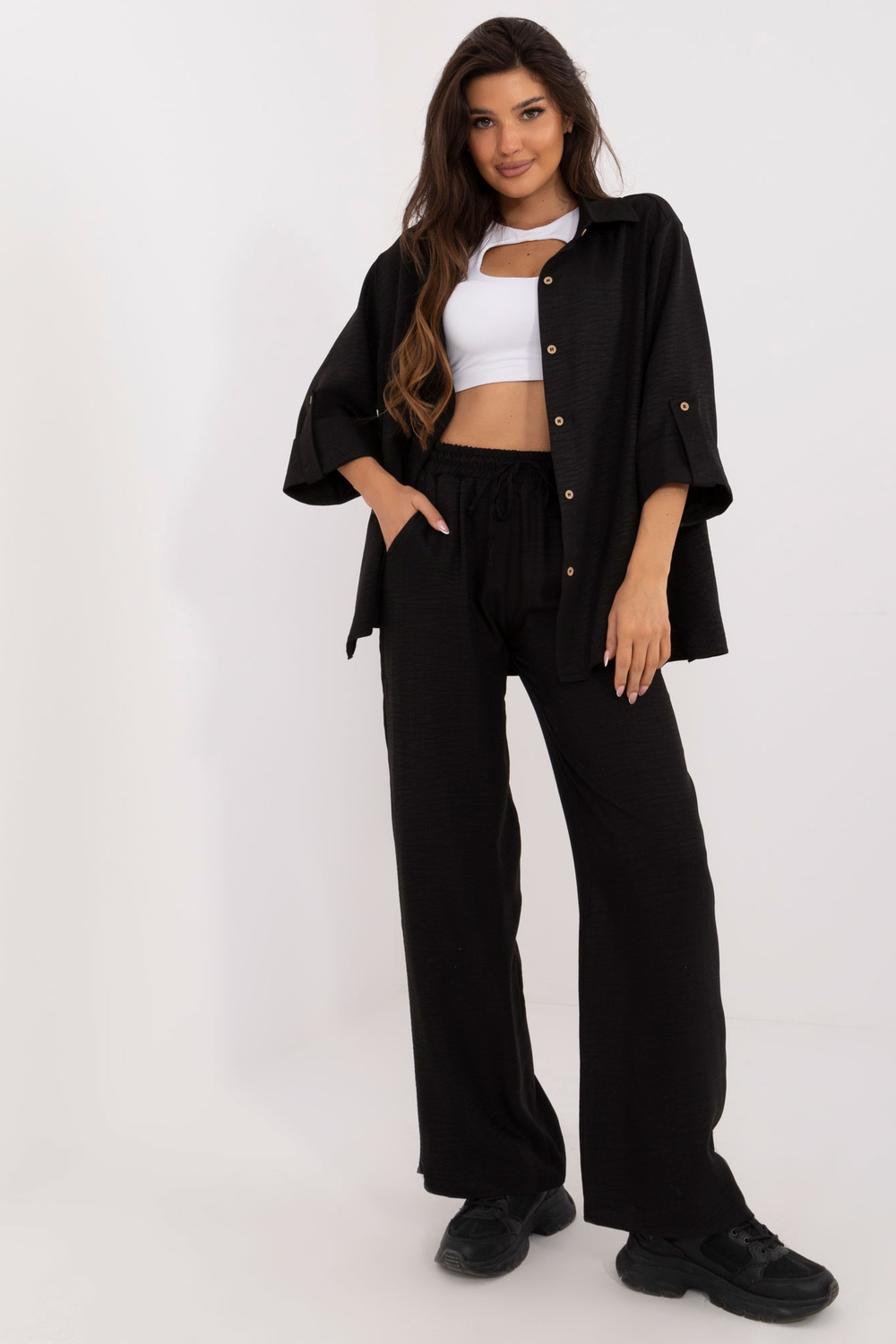 Komplekta izmēri S/M izmērā mērot plakanu: krekla platums zem padusēm - 62 cm, piedurknes garums - 44 cm, krekla garums - 73 cm, bikšu vidukļa platums - 34 cm, bikšu garums - 108 cm.