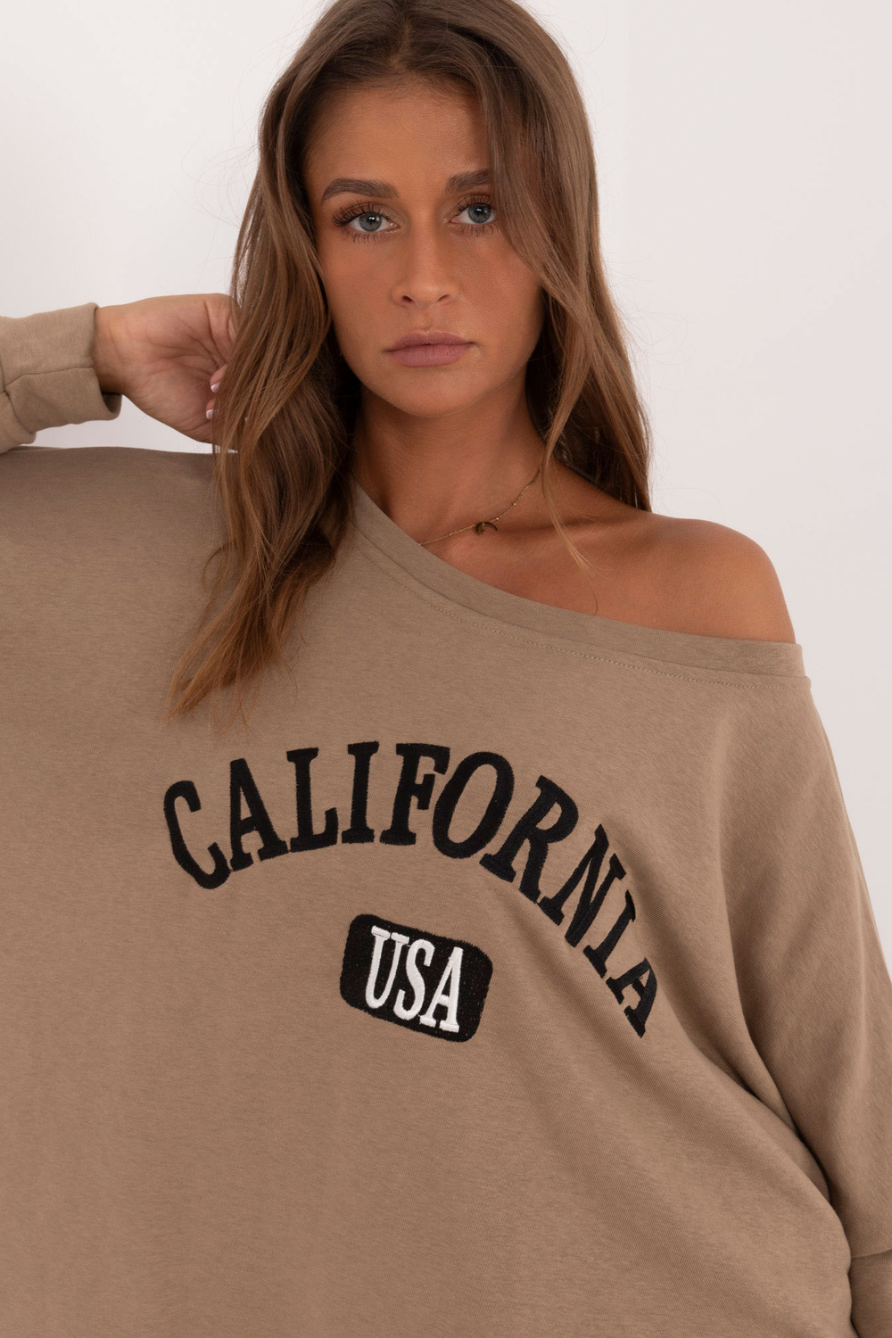 Modele valkā viena izmēra izmēru. Modeļa izmēri: augums 176 cm, krūtis 85 cm, viduklis 64 cm, gurni 92 cm.
