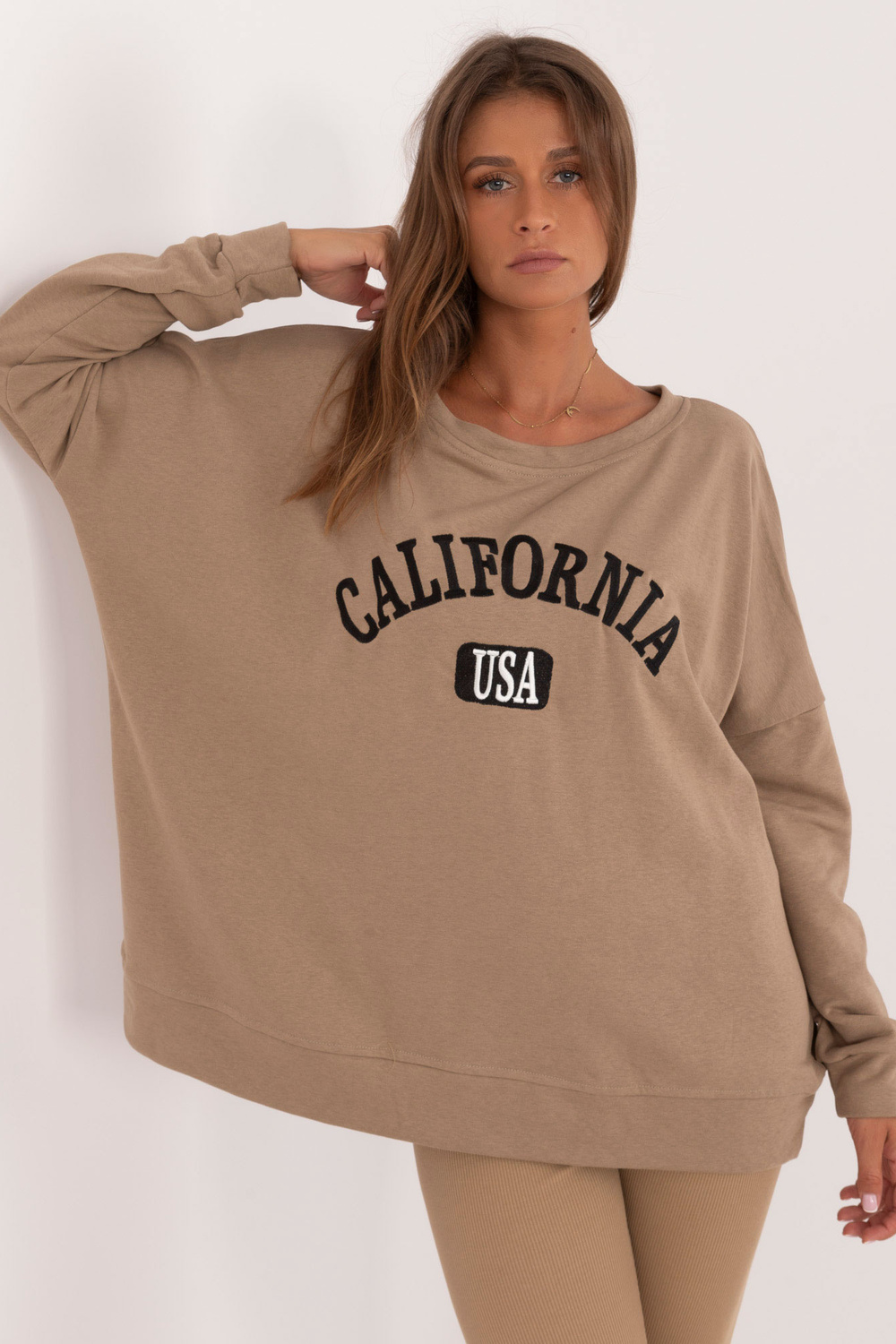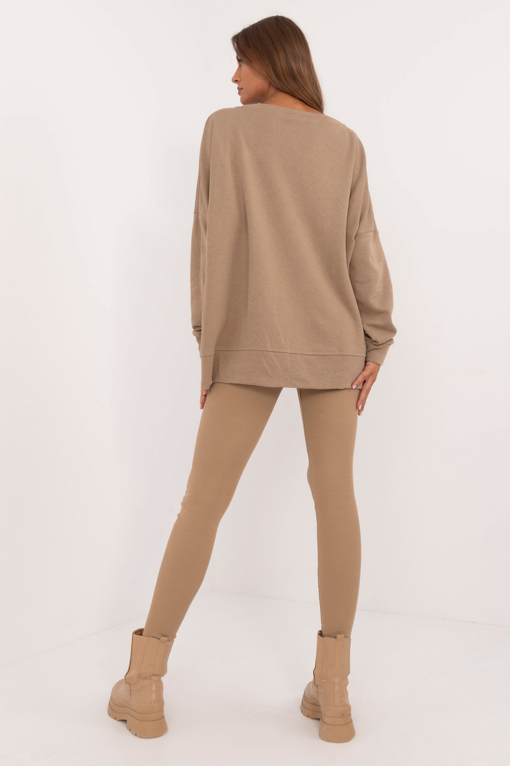 Komplekta izmēri vienā izmērā, mērot plakaniski: sporta krekla platums zem rokām - 78 cm, piedurknes garums - 61 cm, džempera garums - 70 cm, legingu platums jostasvietā - 30 cm, vidukļa augstums - 31 cm, legingu garums - 99 cm.