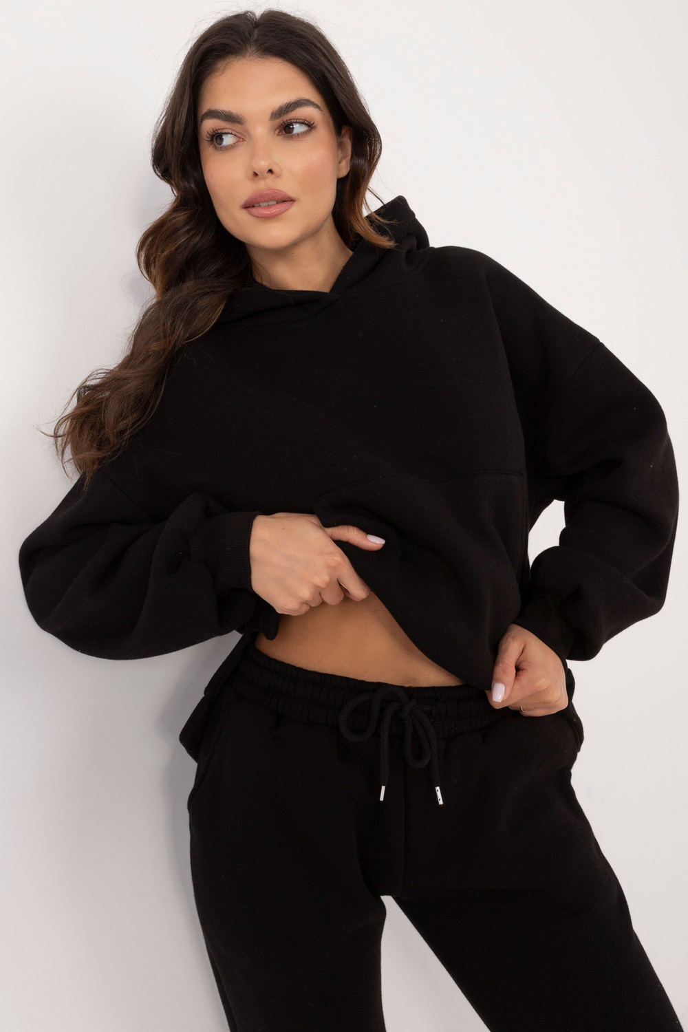 Komplekta izmēri vienā izmērā, mērot plakanā veidā: sporta krekla platums zem rokām - 65 cm, džempera garums - 74 cm, piedurknes garums - 64 cm, bikšu platums jostasvietā - 34 cm, garums bikses - 94 cm.