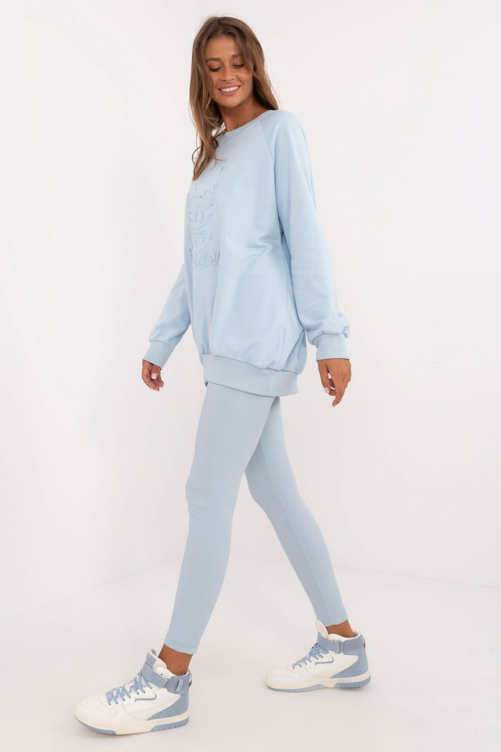 Komplekta izmēri vienā izmērā, mērot plakaniski: sporta krekla platums zem rokām - 70 cm, džempera garums - 74 cm, piedurknes garums - 64 cm, legingu platums jostasvietā - 30 cm, vidukļa augstums - 28 cm, legingu garums - 98 cm.
