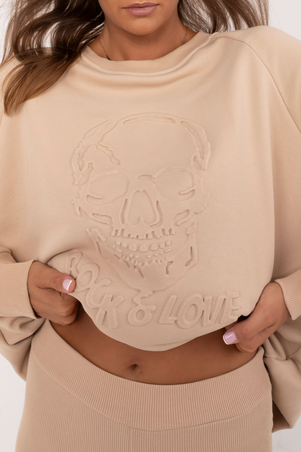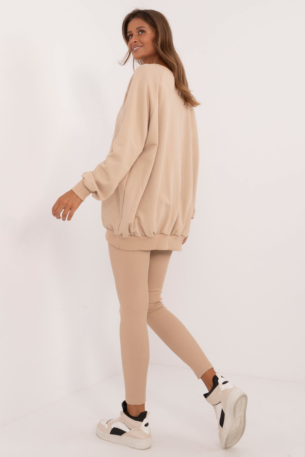 Komplekta izmēri vienā izmērā, mērot plakaniski: sporta krekla platums zem rokām - 70 cm, džempera garums - 74 cm, piedurknes garums - 64 cm, legingu platums jostasvietā - 30 cm, vidukļa augstums - 28 cm, legingu garums - 98 cm.