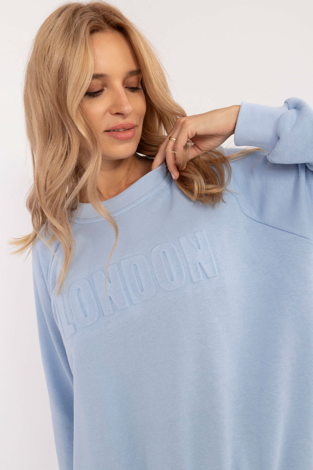 Modele valkā viena izmēra izmēru. Modeļa izmēri: augums 175 cm, krūtis 90 cm, viduklis 66 cm, gurni 94 cm.