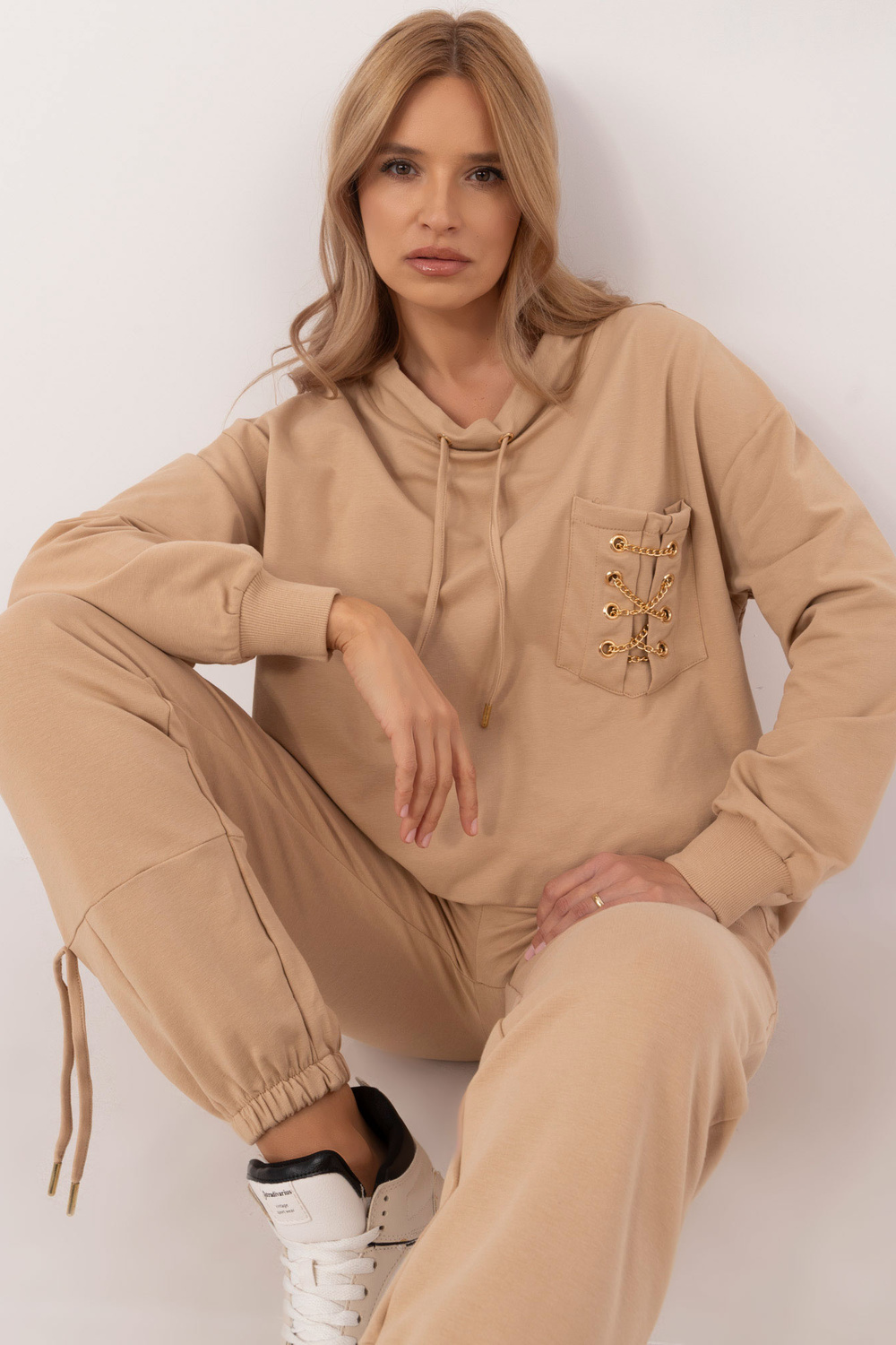 Komplekta izmēri S izmēram mēra uz plakanas: paduses platums - 60 cm, džempera garums - 68 cm, piedurknes garums - 53 cm (no šuves), bikses vidukļa platums - 34 cm, bikšu garums - 97 cm