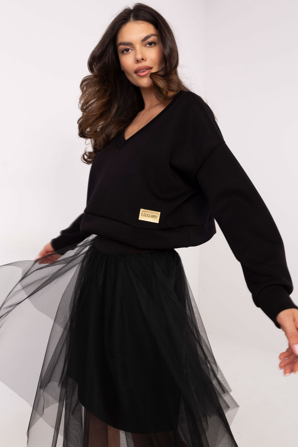 Modele valkā vienu izmēru. Modeles izmēri: augums 173 cm, krūtis 85 cm, viduklis 62 cm, gurni 95 cm.