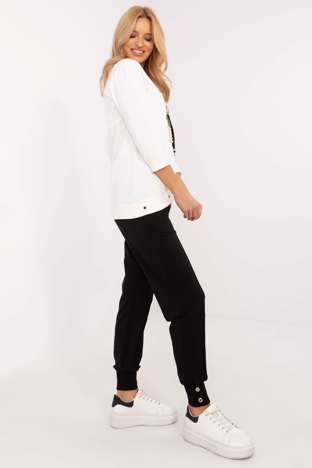 Komplekta izmēri S izmēram mēra uz plakanas: paduses platums - 50 cm, džempera garums - 68 cm (priekšpusē), džempera garums - 72 cm (aizmugurē), piedurknes garums - 44,5 cm (no šuves), bikšu platums jostasvietā - 34 cm, bikšu garums - 99 cm.