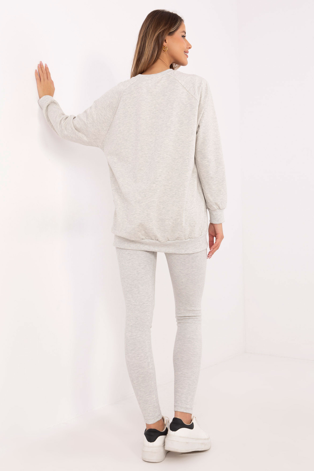 džempera materiāla sastāvs: 72% kokvilna, 22% poliesters, 6% elastāns; legingu materiāla sastāvs: 90% kokvilna, 10% elastāns