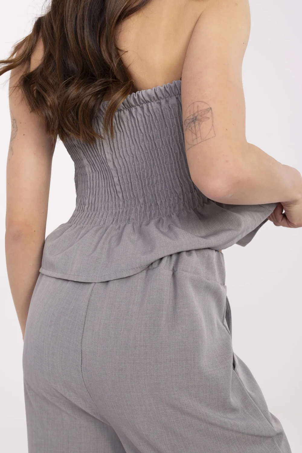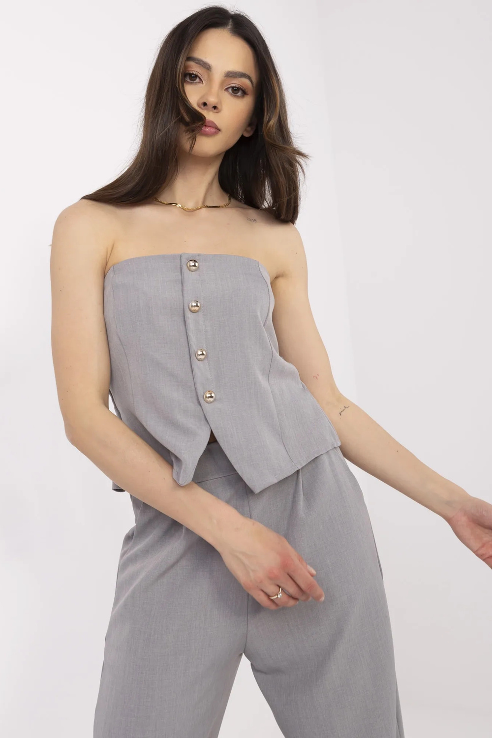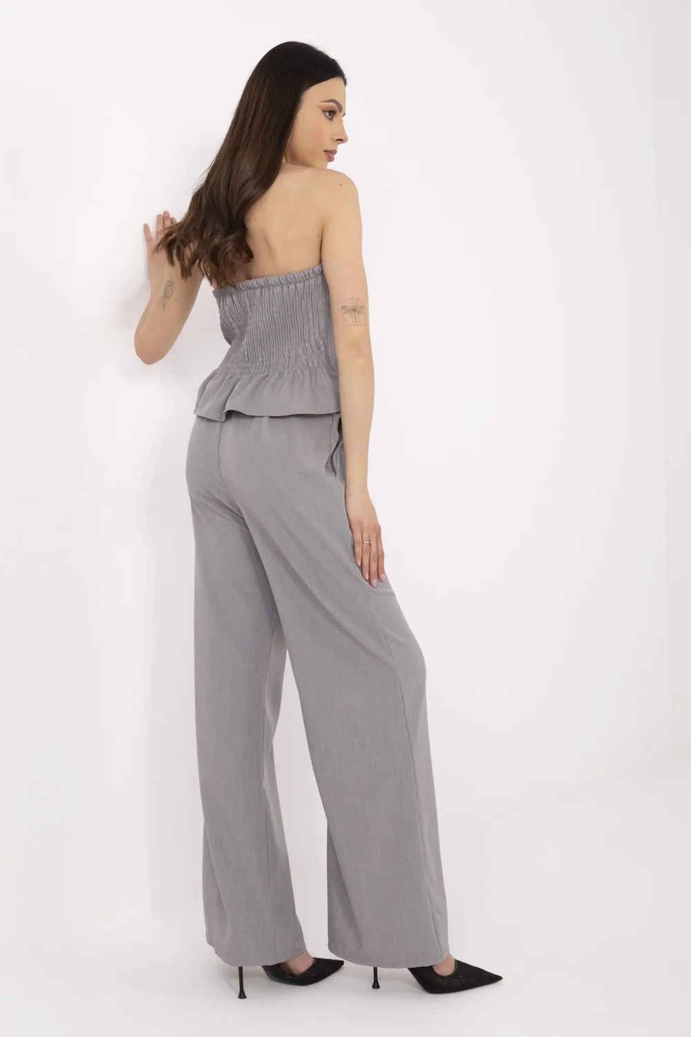 Modele valkā vienu izmēru. Modeļa izmēri: augums 175 cm, krūtis 84 cm, viduklis 61 cm, gurni 91 cm.