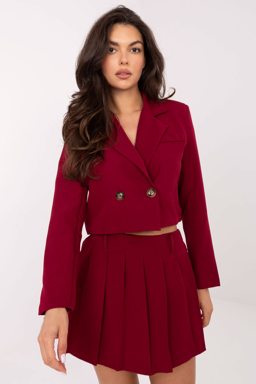 Koplekta izmēri S izmērā: platums zem padusēm - 51 cm, žaketes garums - 45 cm, piedurknes garums - 61 cm (no šuves), platums gurnu rajonā - 47 cm, svārku platums vidukļa rajonā - 37 cm (novietojot), svārku platums vidukļa rajonā - 46 cm (izstiepjot), platums gurnu rajonā - 55 cm, svārku garums - 38 cm.