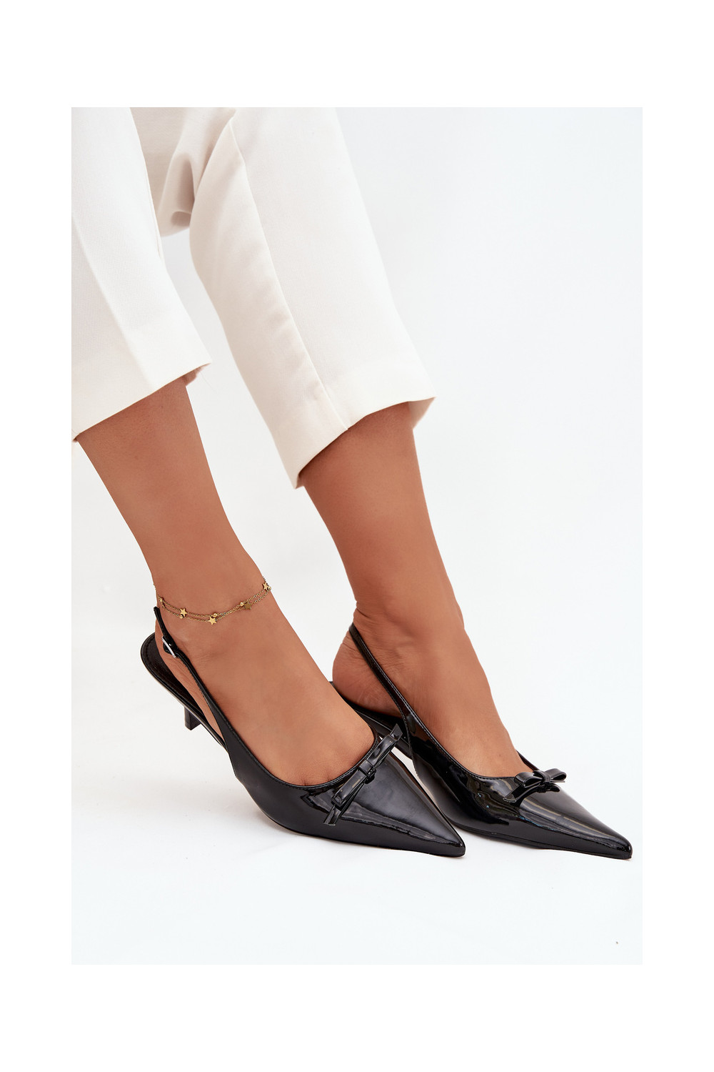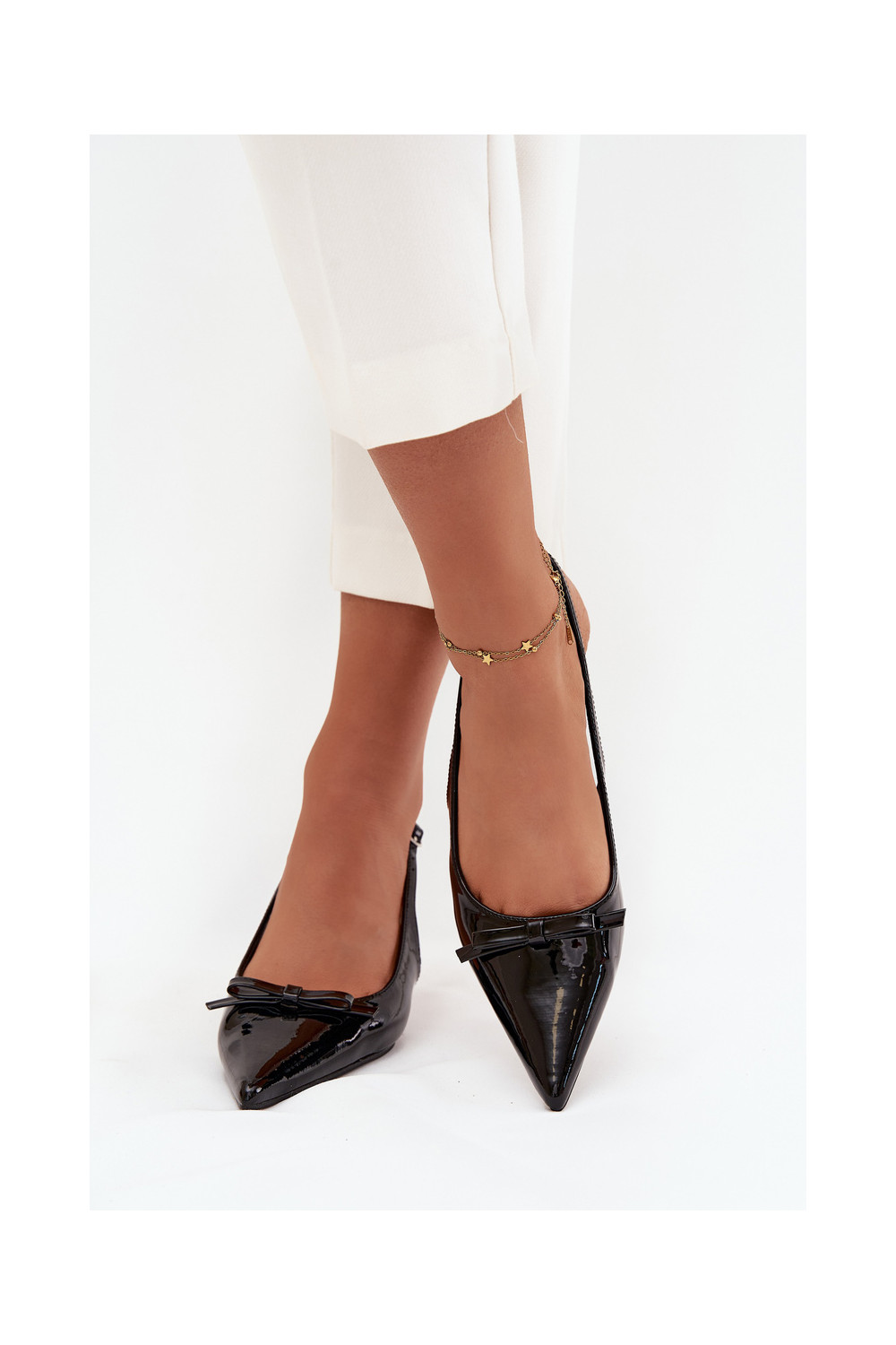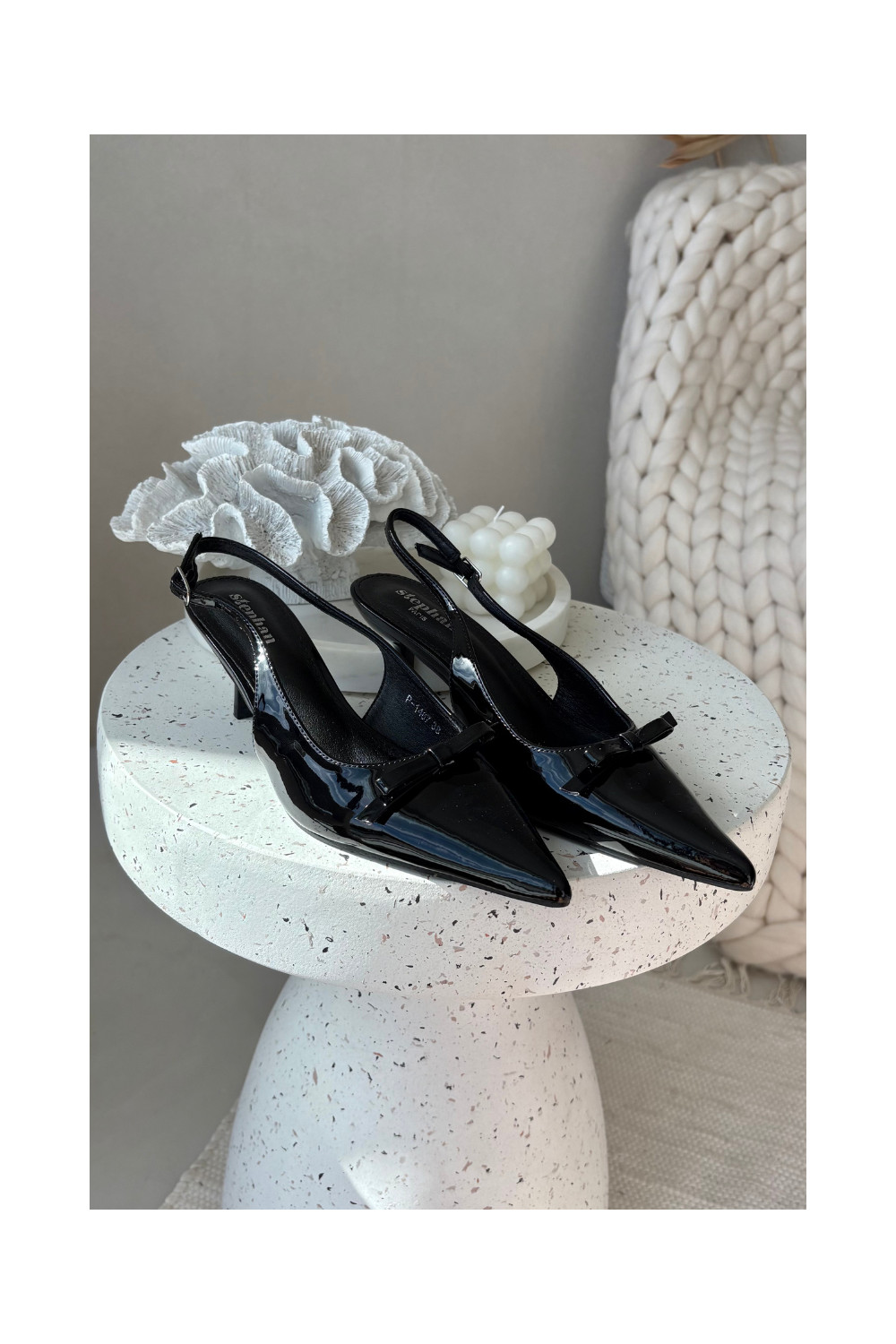 Lakuoti apavi ar plāniem papēžiem un lentītēm melnā krāsā Olvena