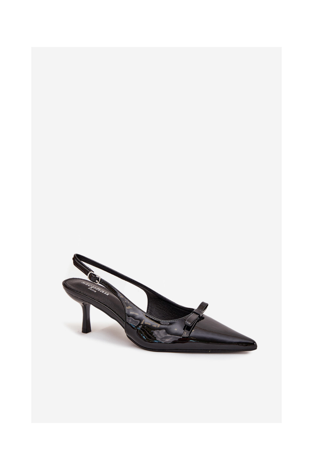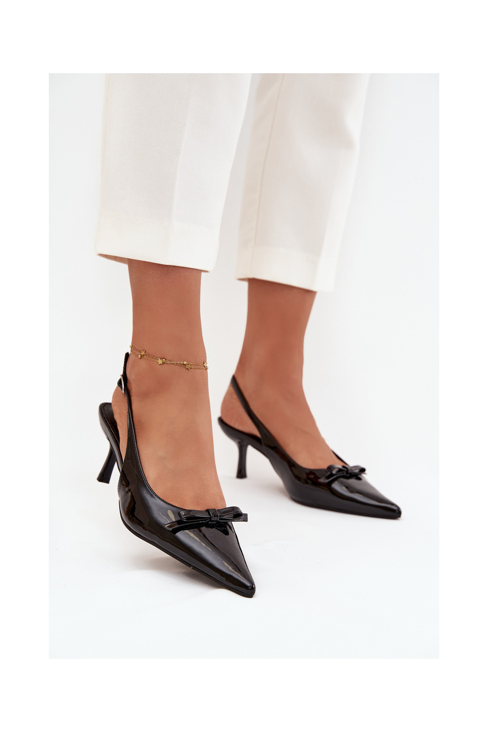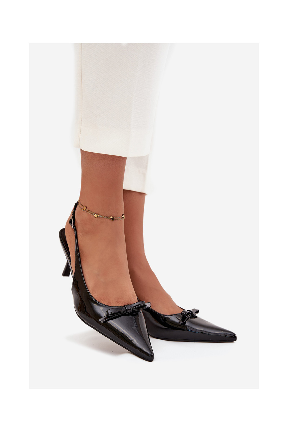 Lakuoti apavi ar plāniem papēžiem un lentītēm melnā krāsā Olvena
