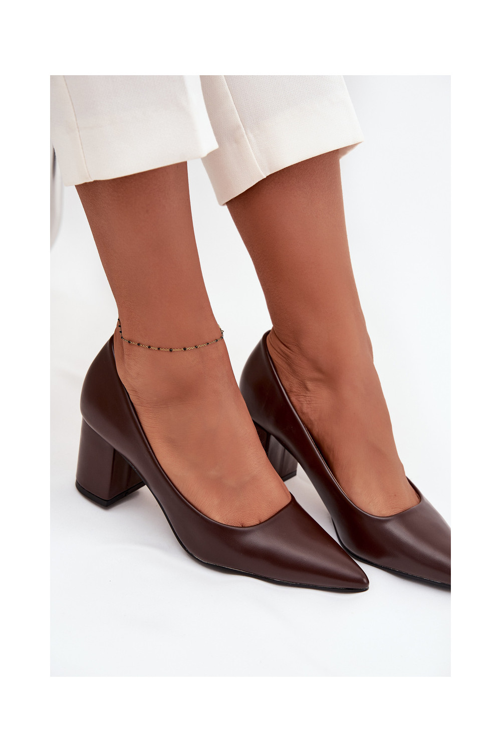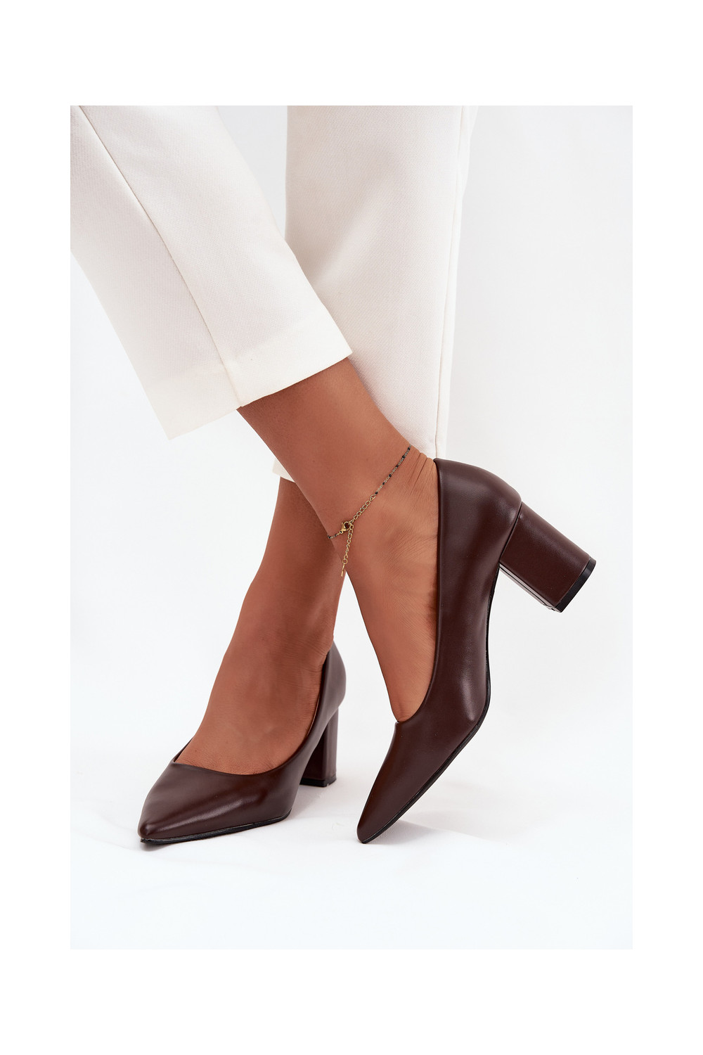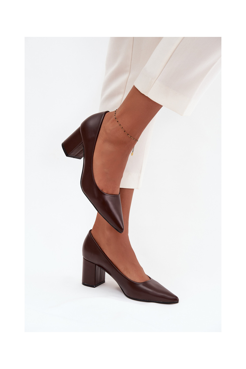 Sieviešu smailās kurpes „Ryvessa" uz pīlāra papēža, šokolādes krāsā