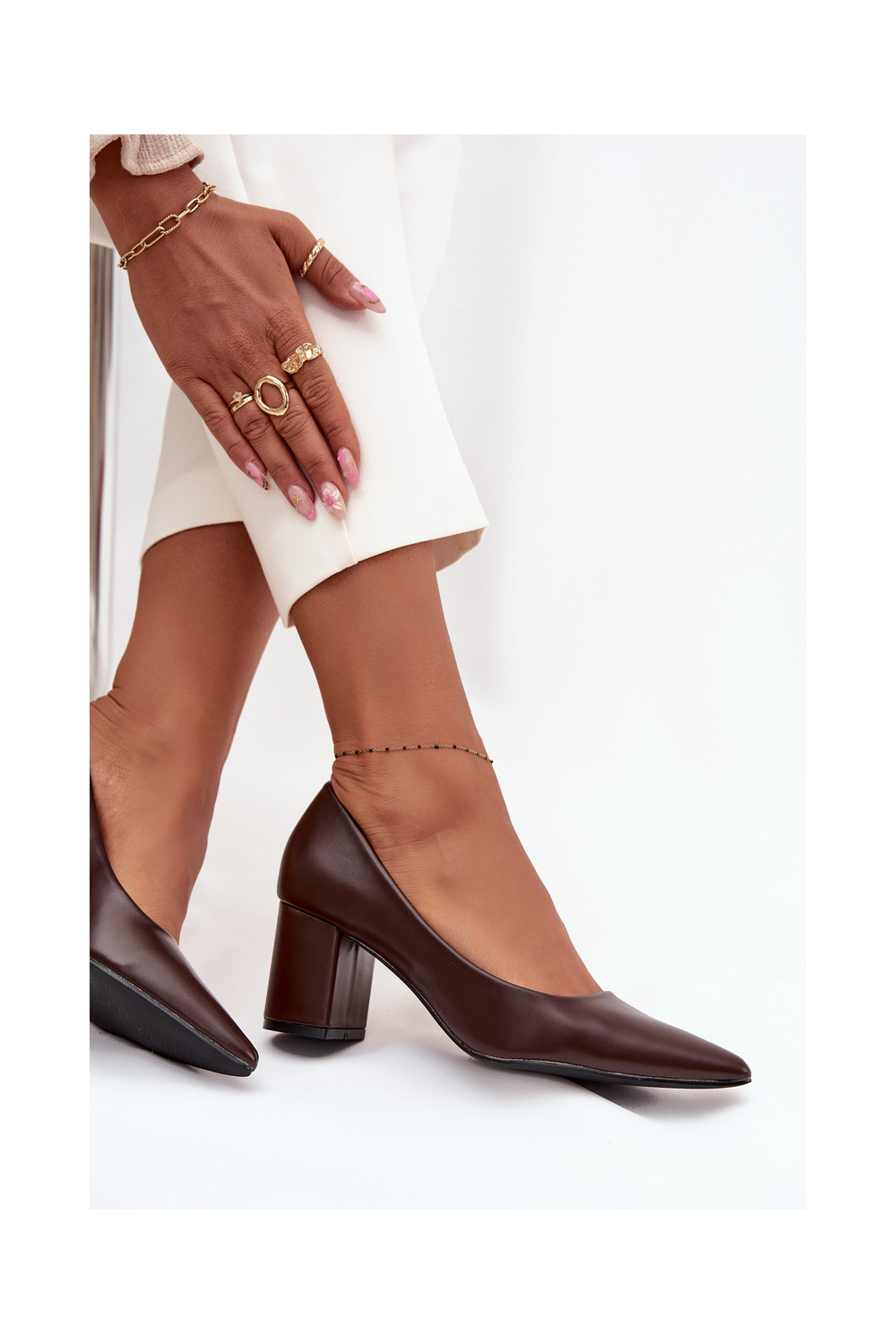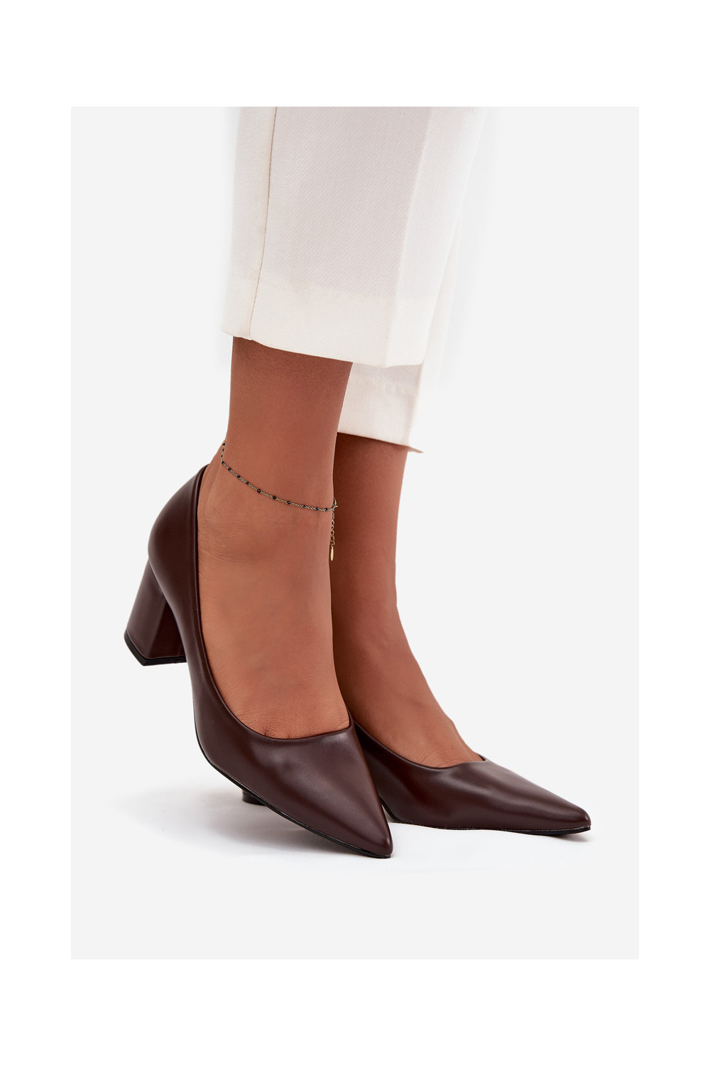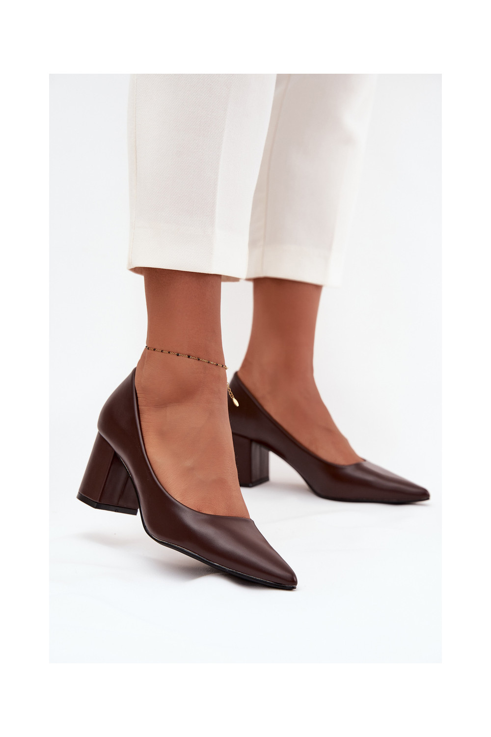 Sieviešu smailās kurpes „Ryvessa" uz pīlāra papēža, šokolādes krāsā