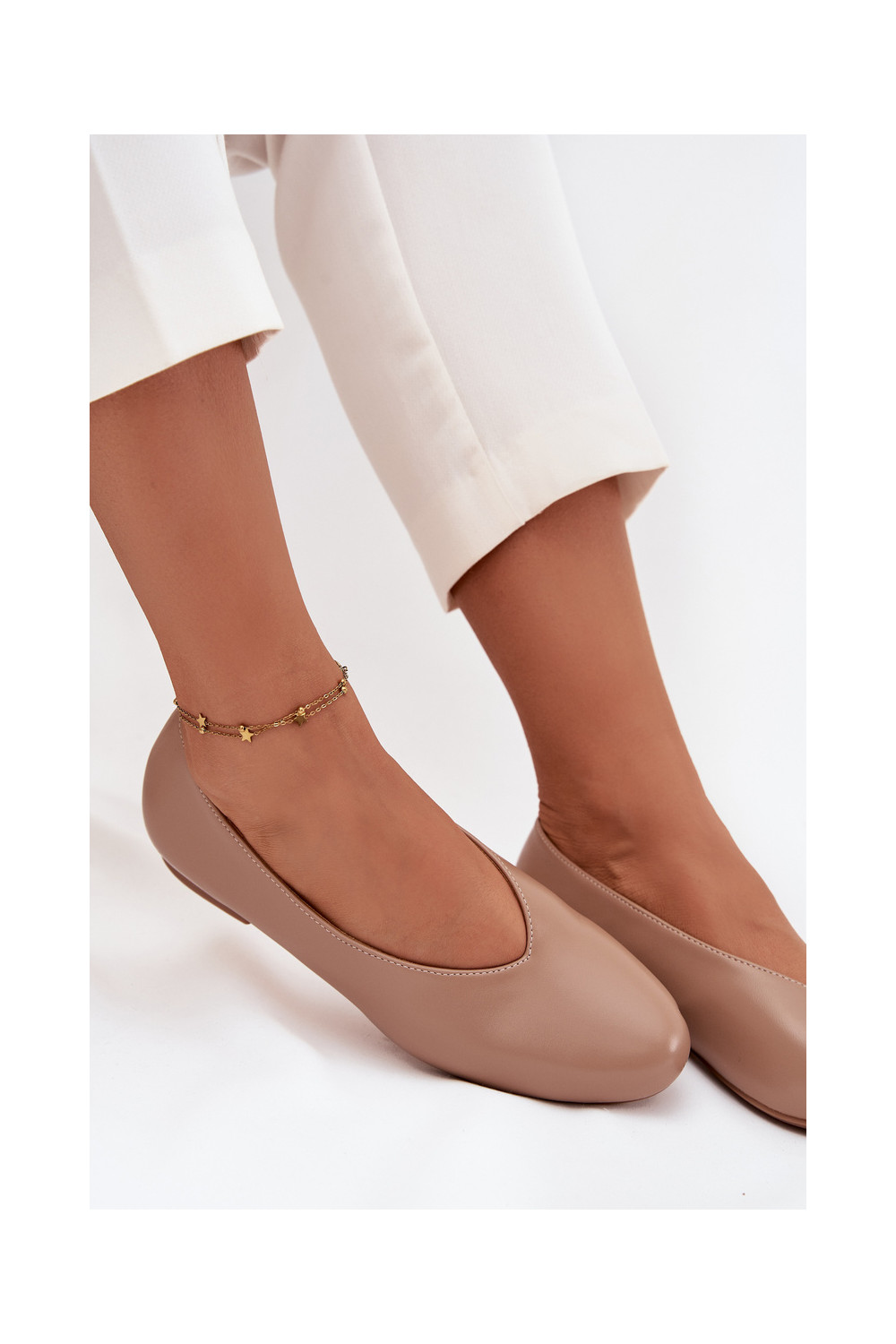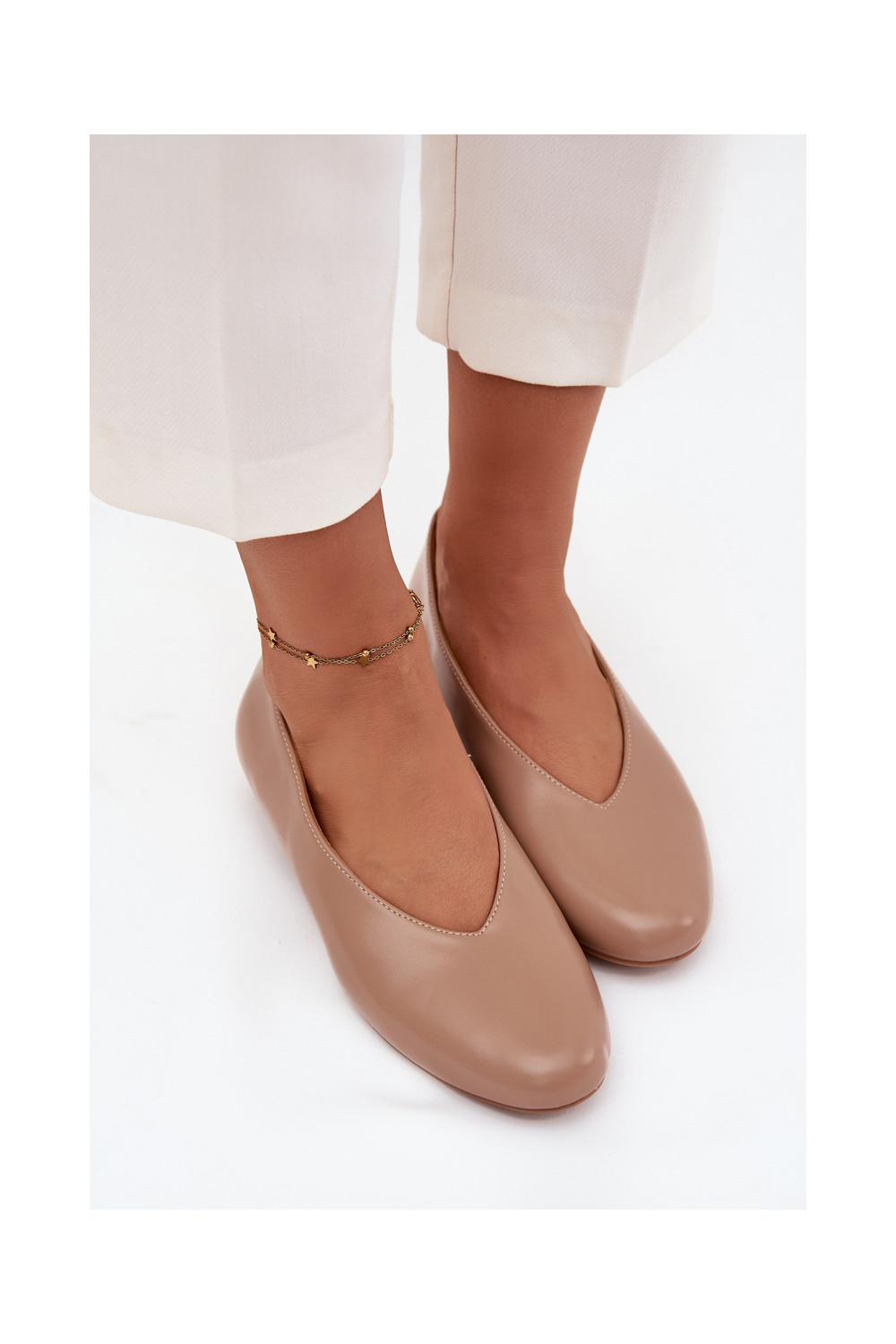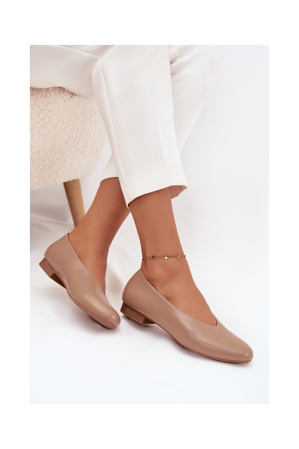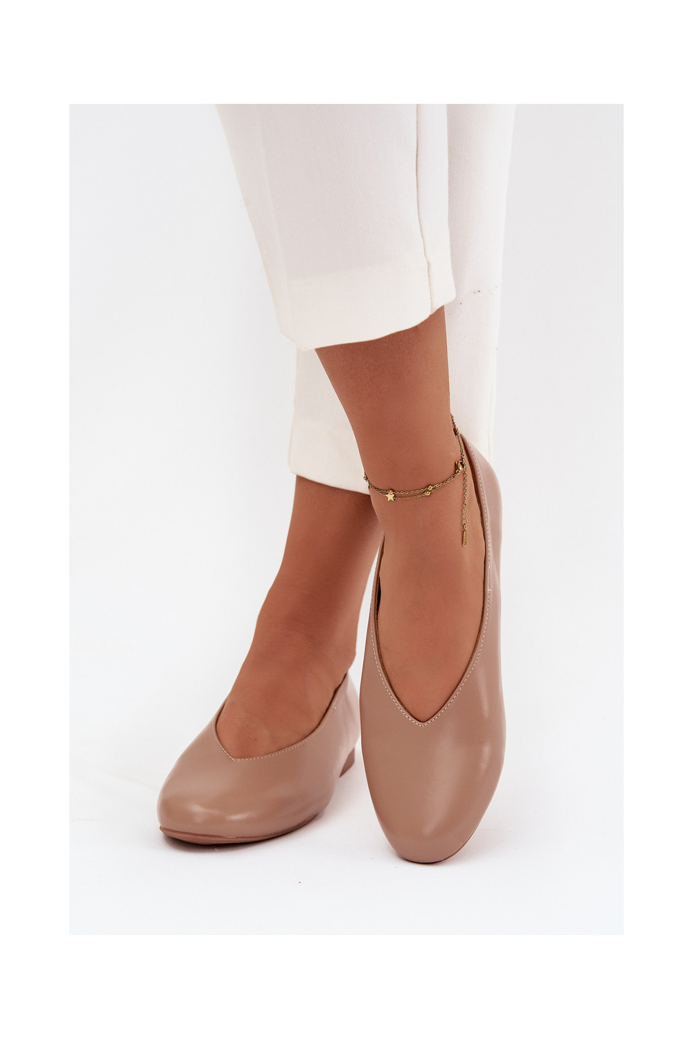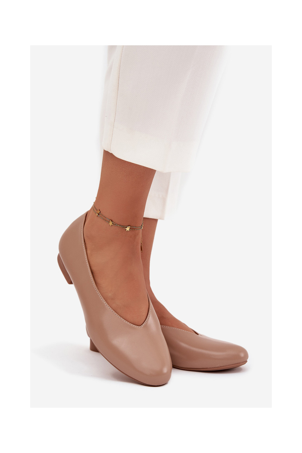 Sieviešu balerīnas no mākslīgās ādas ar platām papēžiem, smilšu krāsā Olyssia