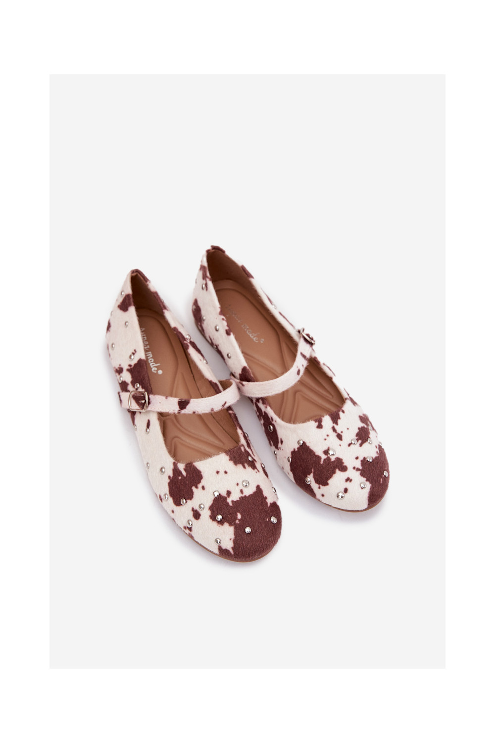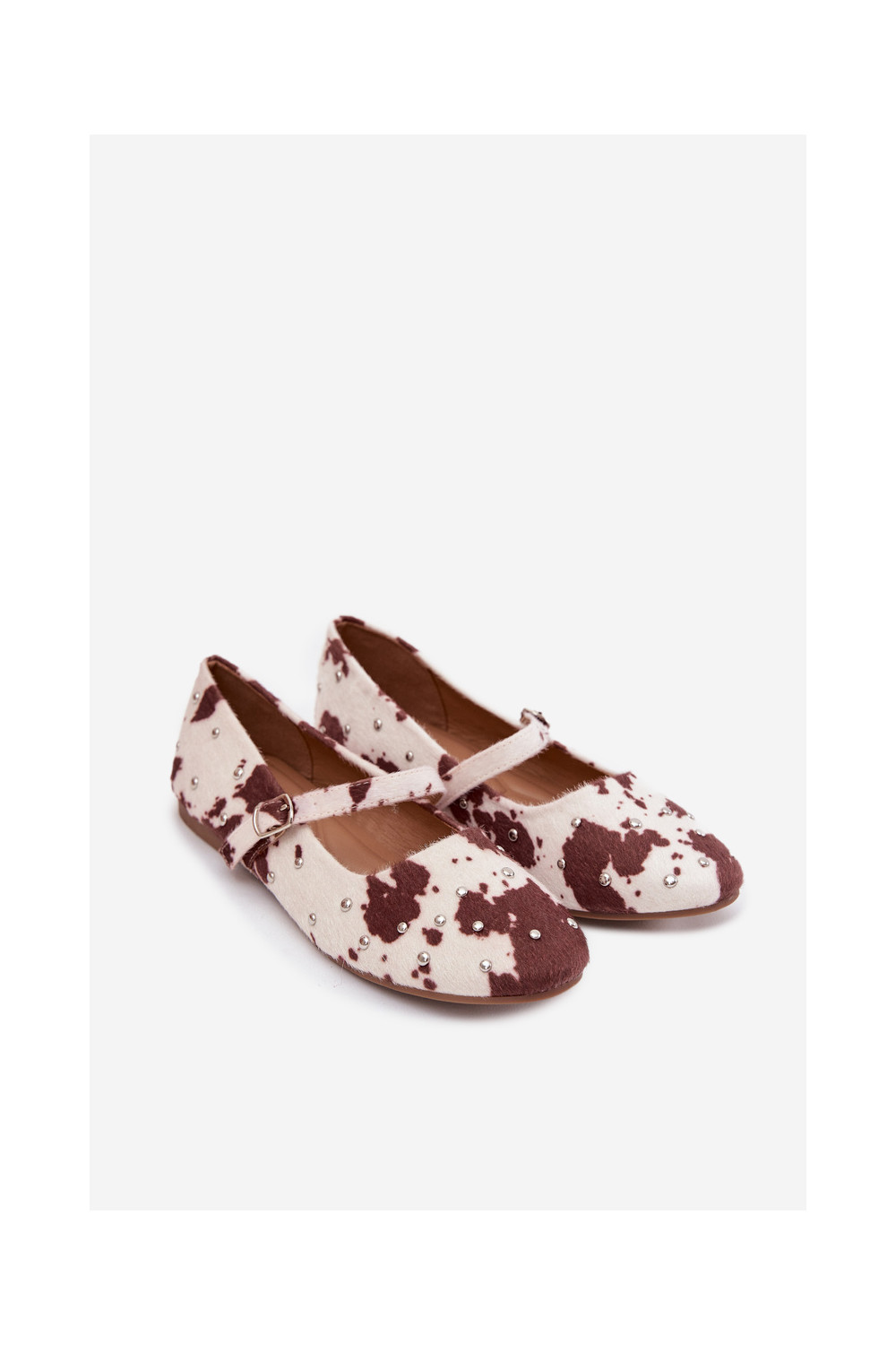 Dekorētas sieviešu balerīnas ar siksnām rakstiem baltā-brūnā krāsā Olivisse