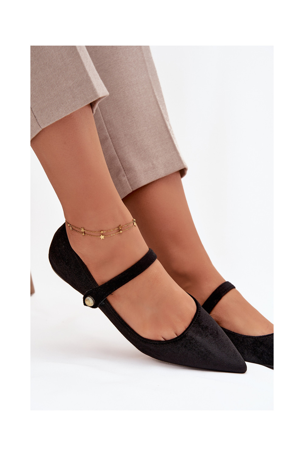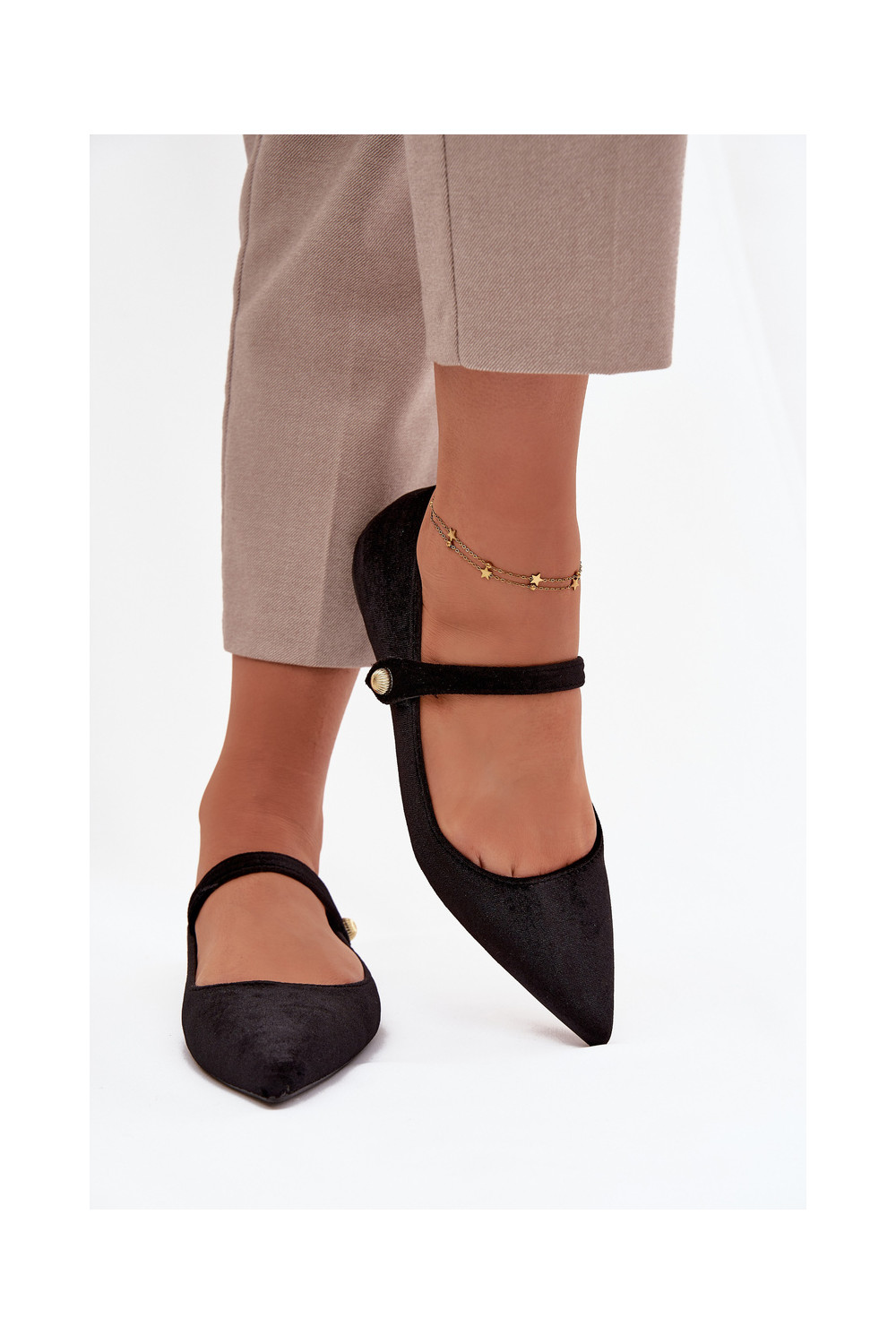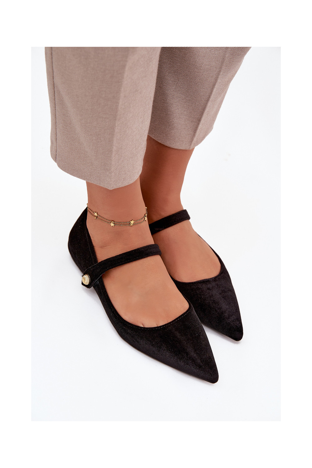 Aksamitne Balerīnas ar siksniņām I Zelta krāsasm Detalem melnas krāsas Gisanne