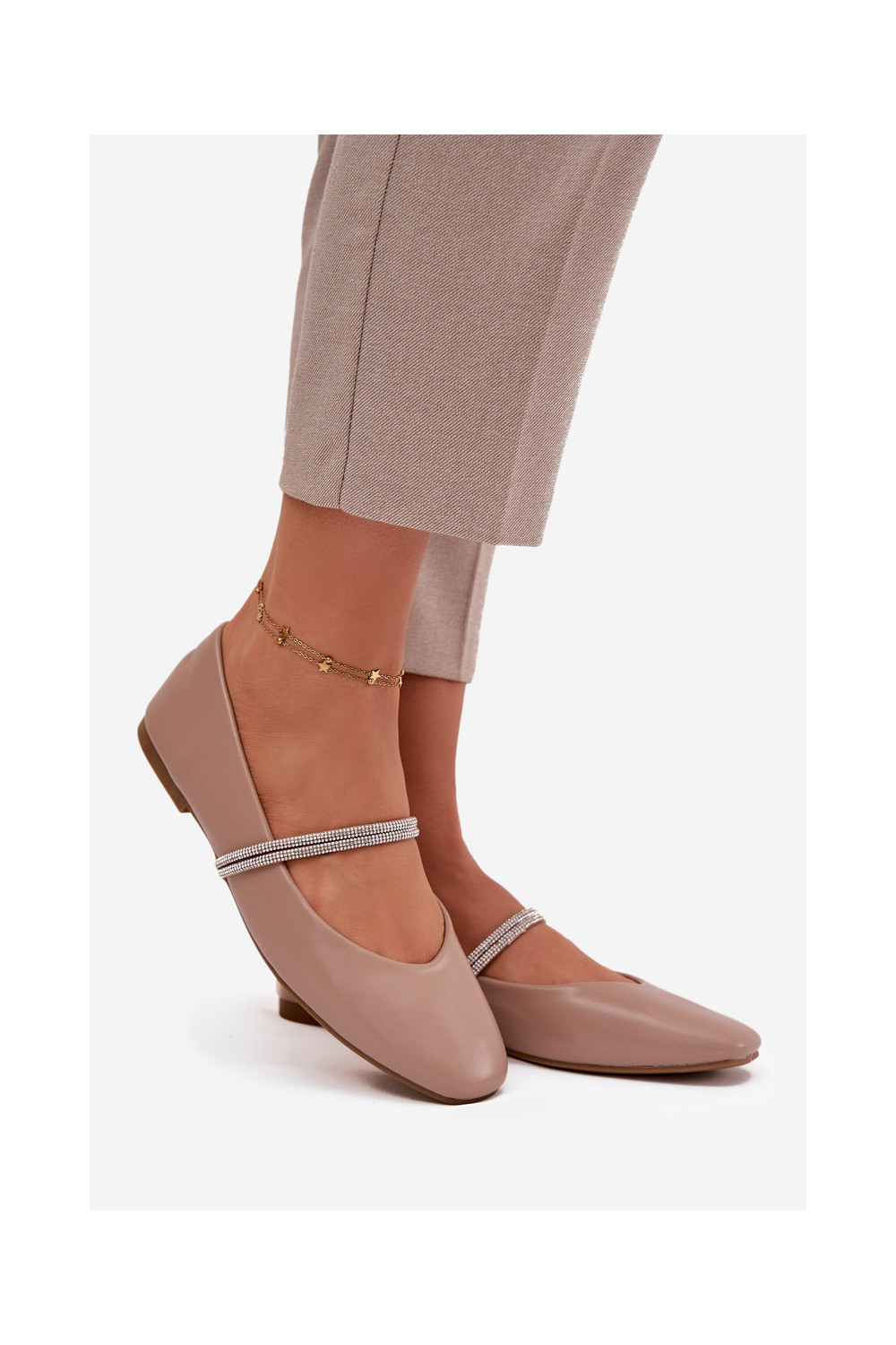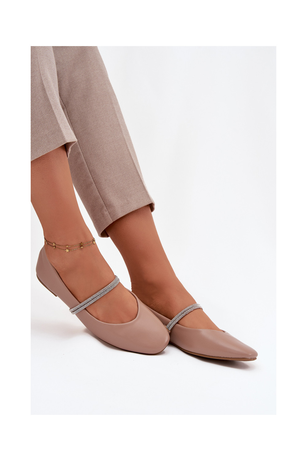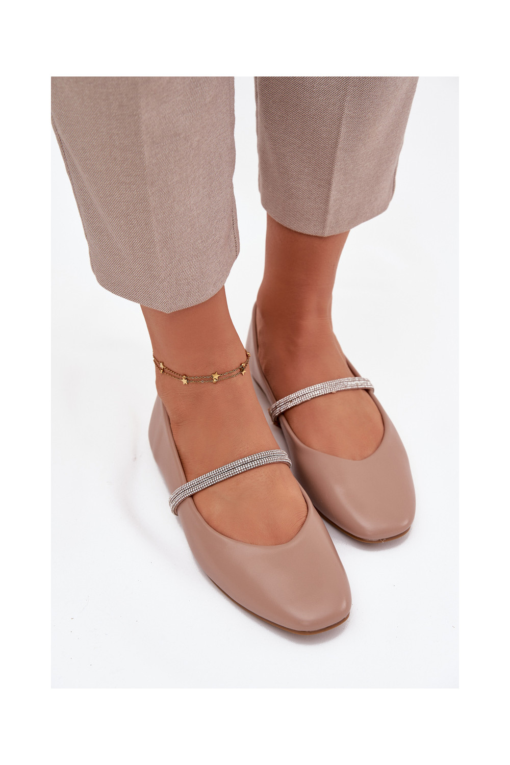 Balerīnas SieviešuBłyszczącymi Paskami smilšu krāsas Ilirene
