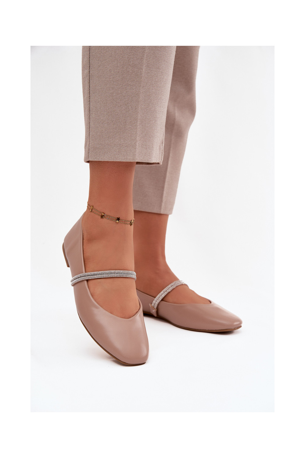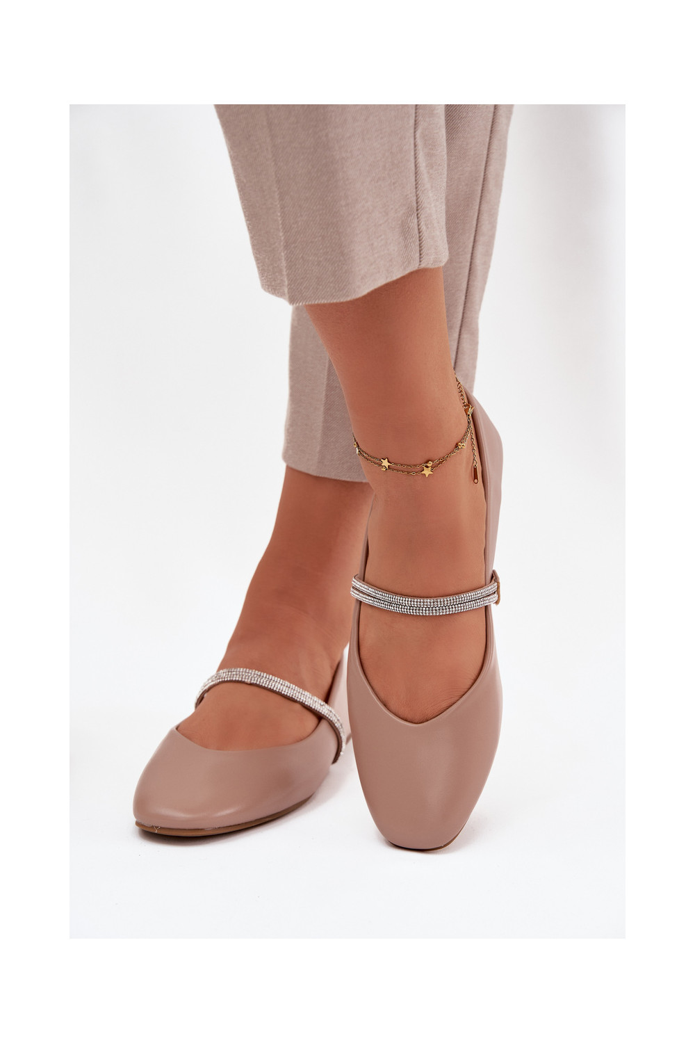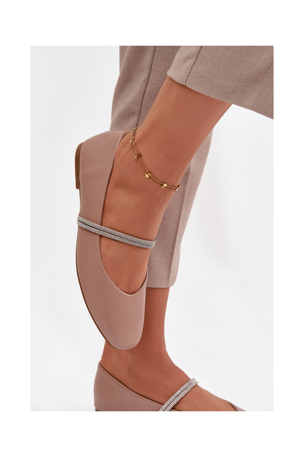 Balerīnas SieviešuBłyszczącymi Paskami smilšu krāsas Ilirene
