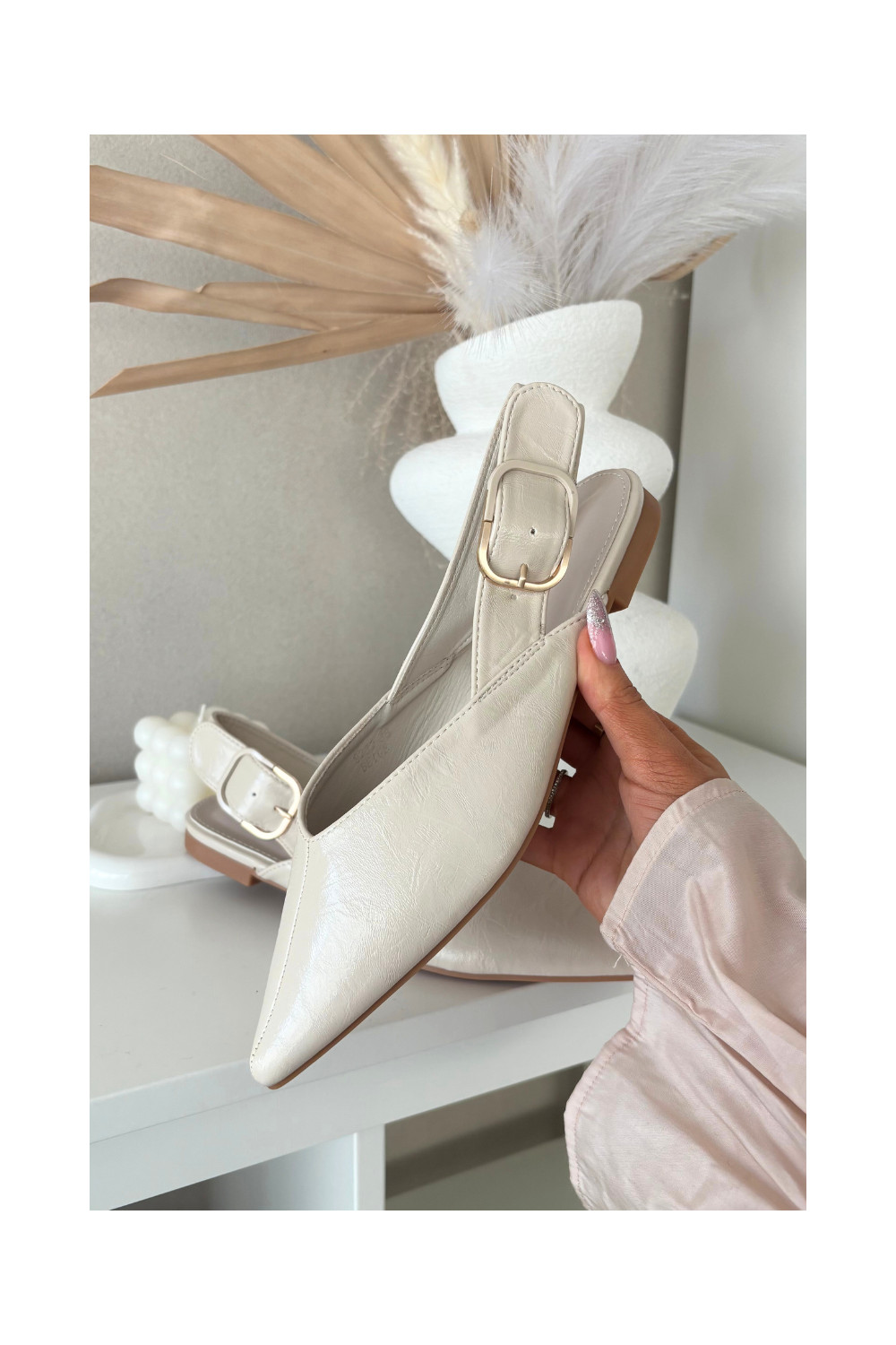 Lakuotas balerīnas ar sprādzēm smilšu krāsā Rinalle