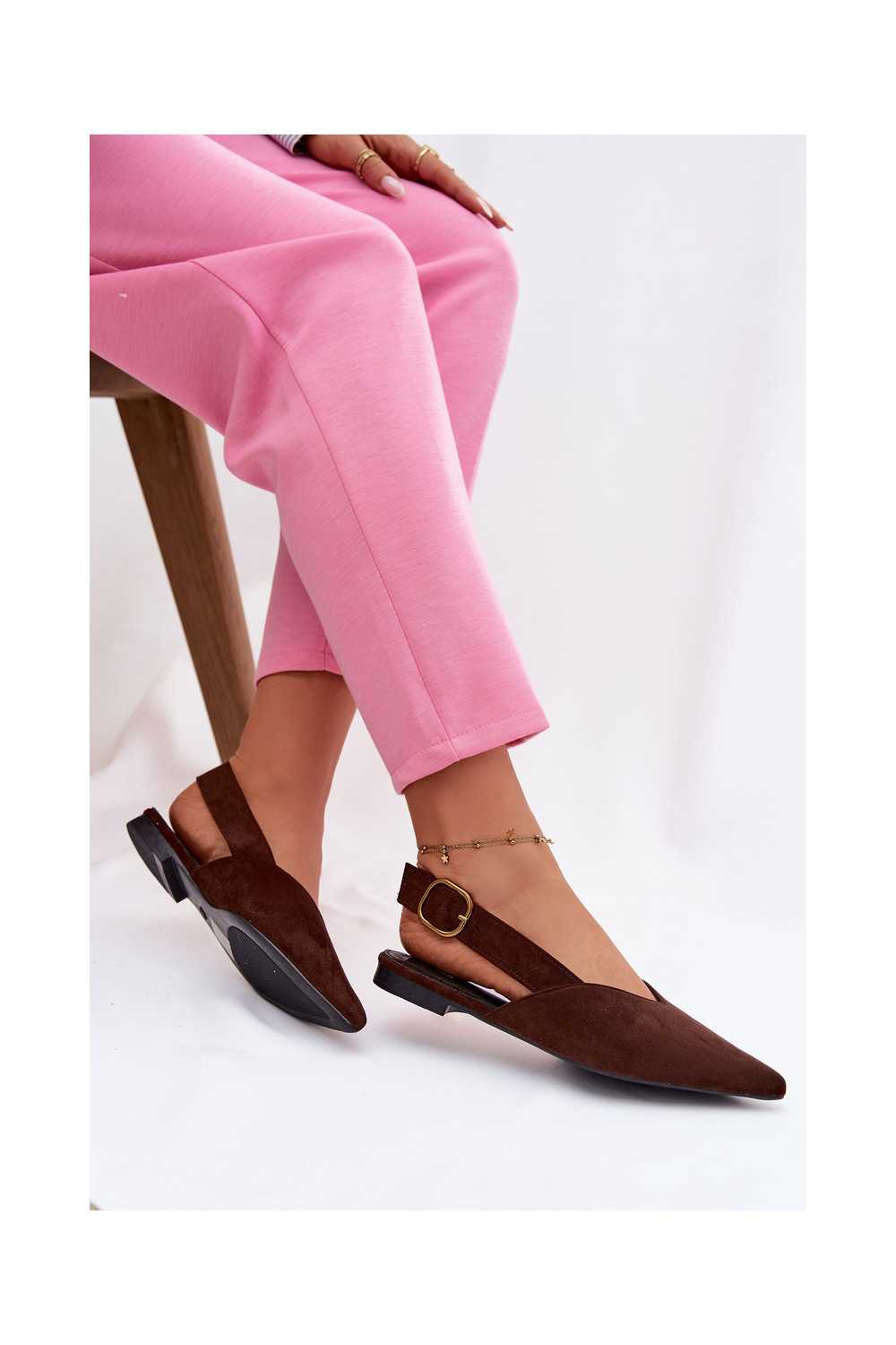 Balerīnas ar zelta krāsas sprādzēm no mākslīgā zamša, šokolādes krāsas Palerra
