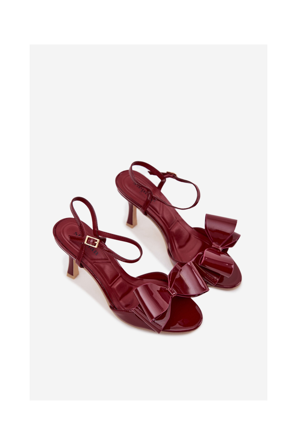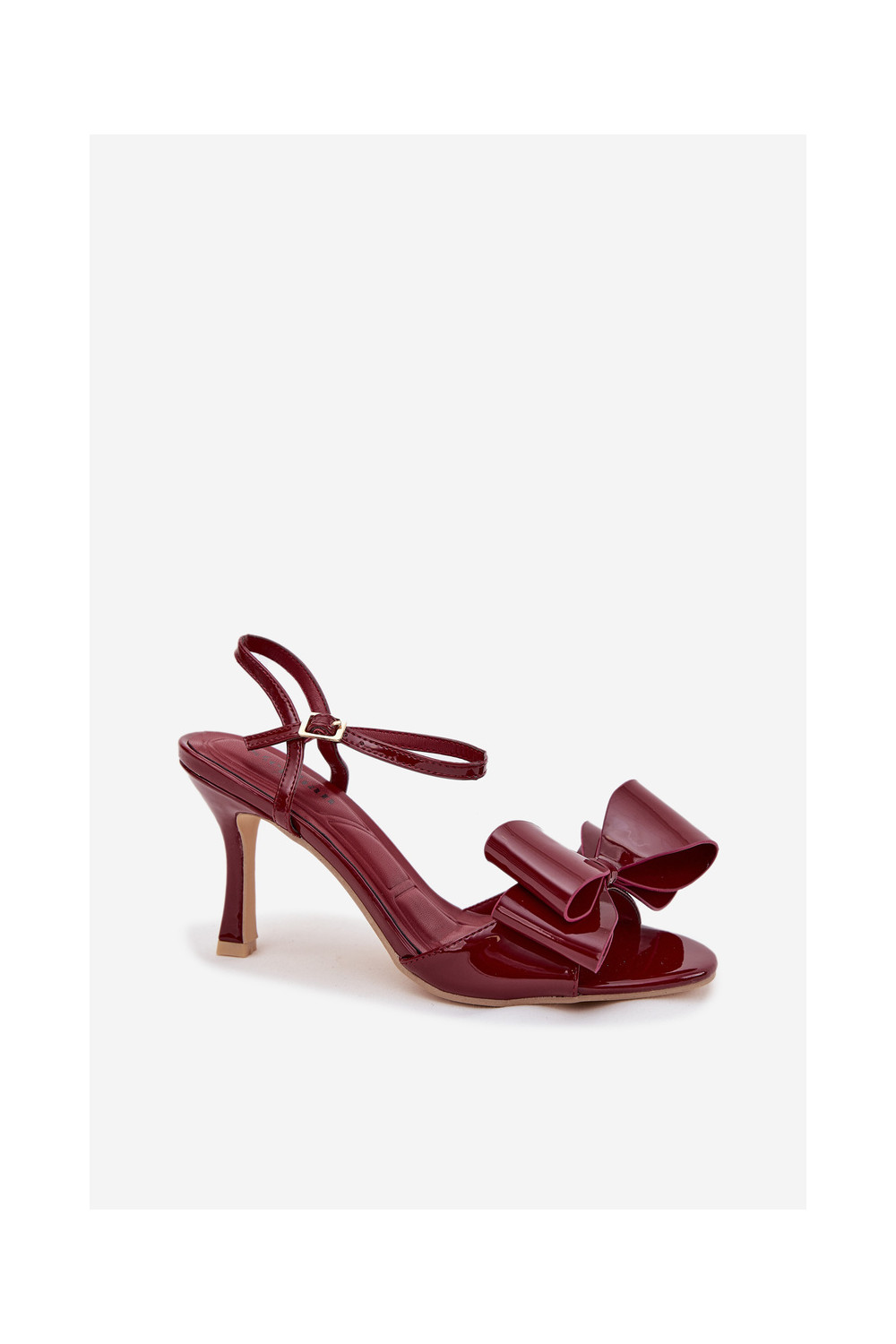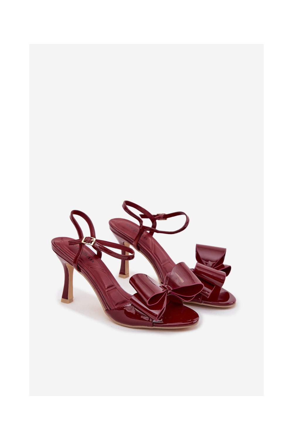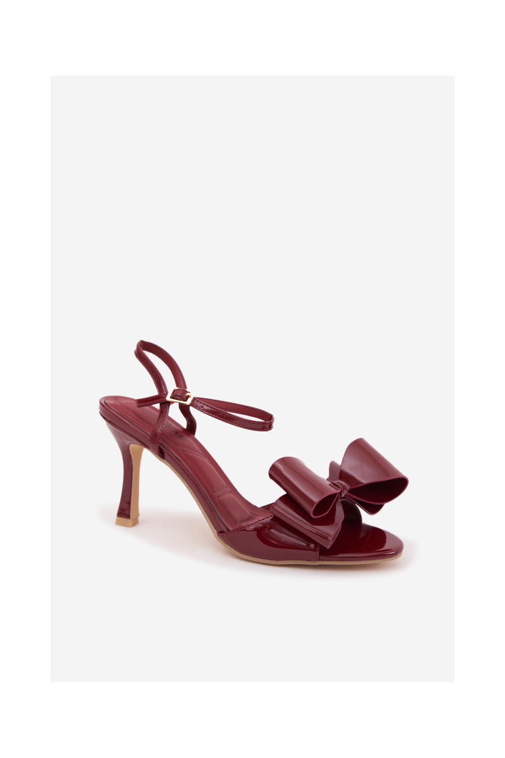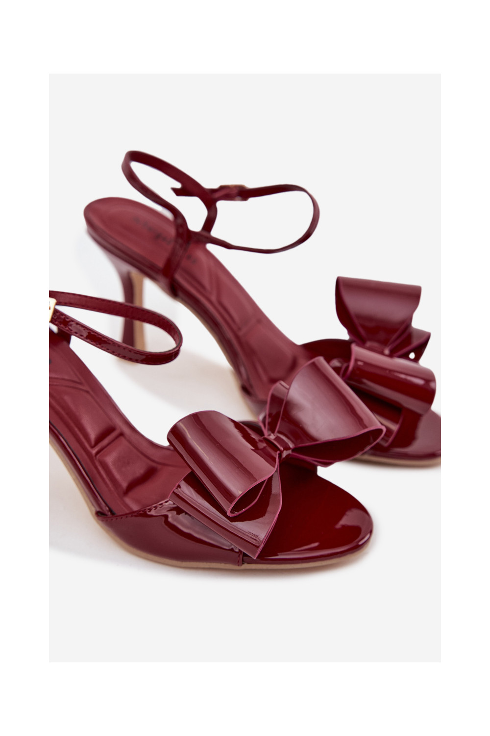 Lakoti augstpapēžu sandales ar šņorēm ķiršu krāsā Noliva