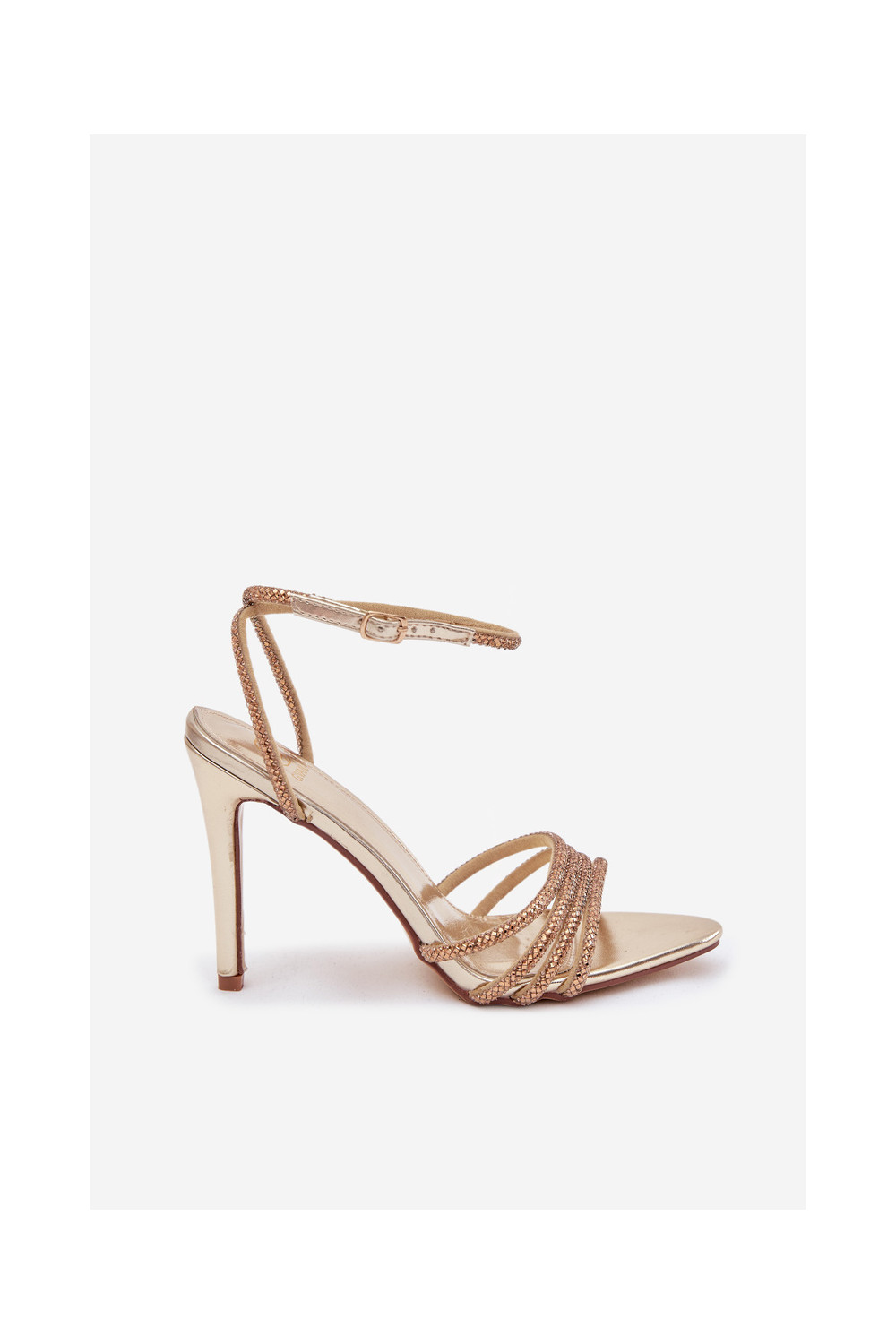 Sandales ar plāniem papēžiem un mirdzošām acīm, zelta krāsas Rosavie