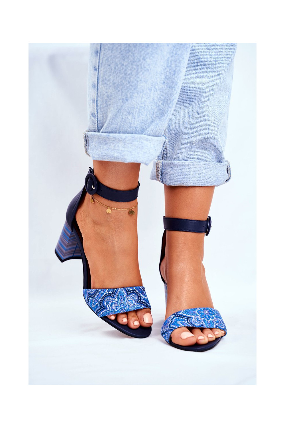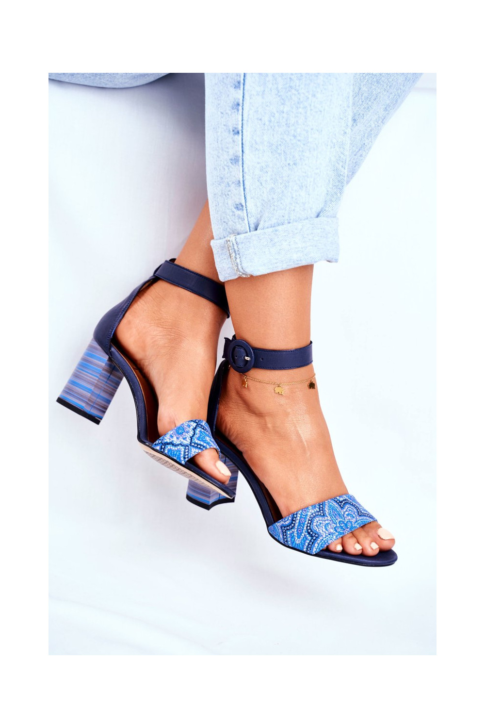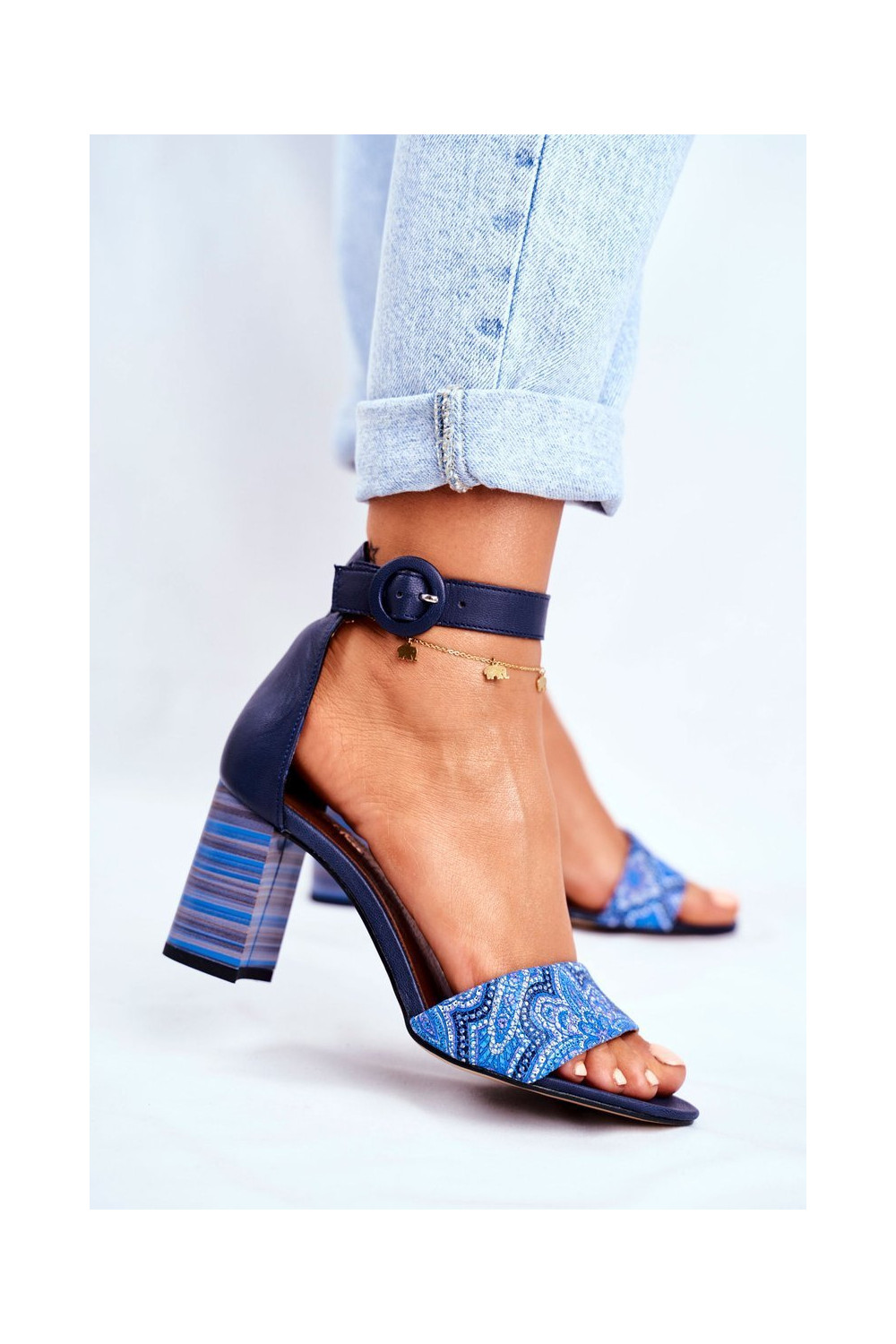 Sieviešu dabīgas ādas sandales tumši zilā krāsā 04235-17/00-5