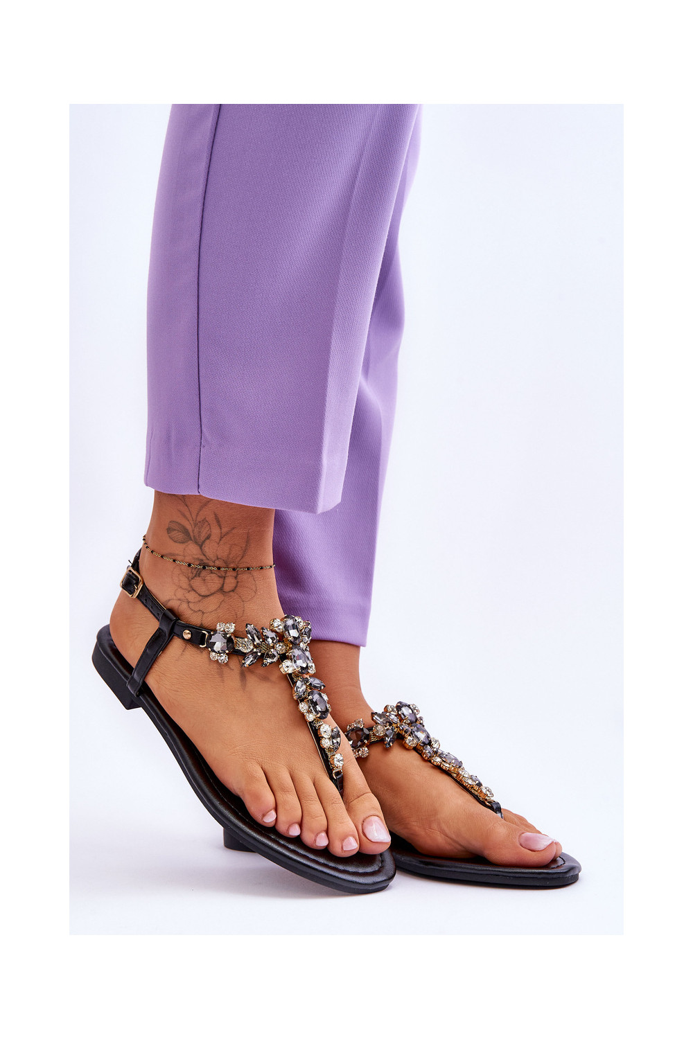 Sieviešu sandales-čības ar akmentiņu dekorāciju melnā krāsā Lenisa