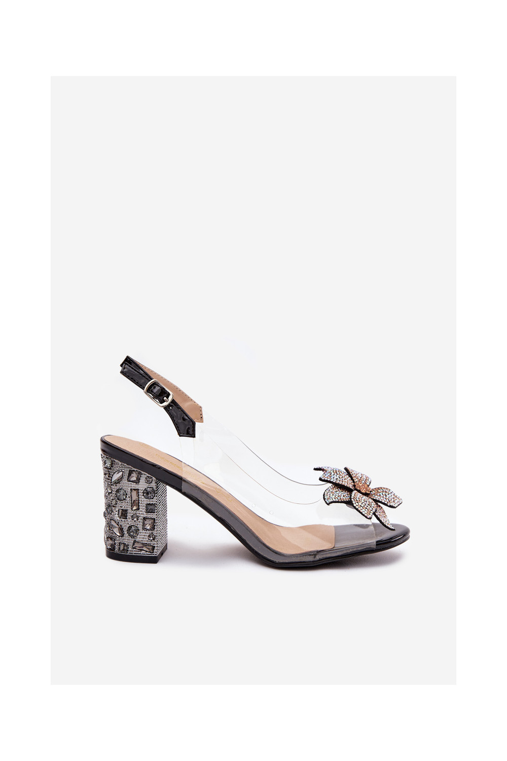 Caurspīdīgas sandales ar papēdi ar ornamentiem D&A MR38-321 melnas krāsas