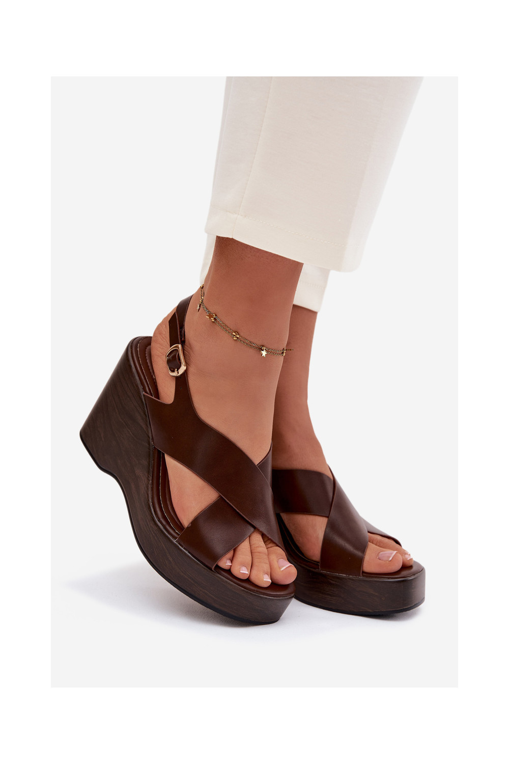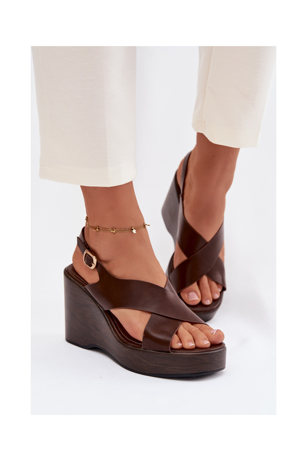 Sieviešu sandaļi no mākslīgās ādas uz platformas, šokolādes krāsas Janivra
