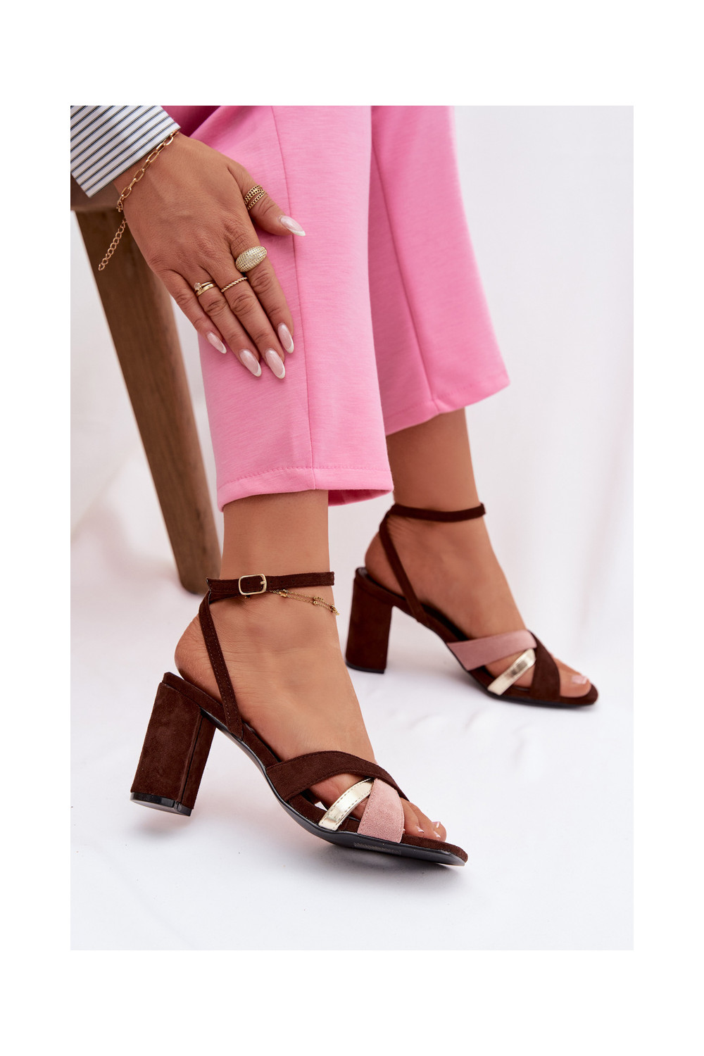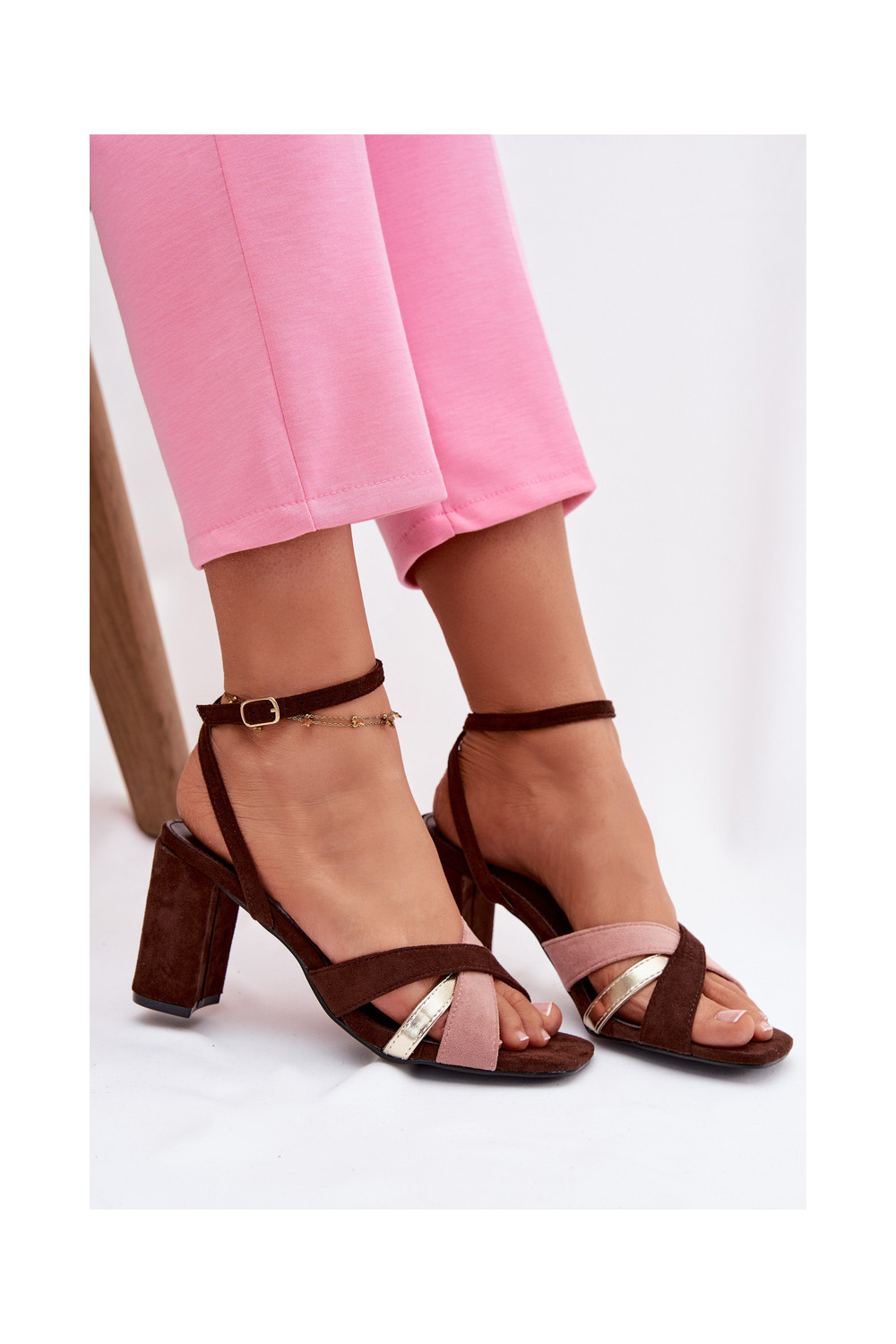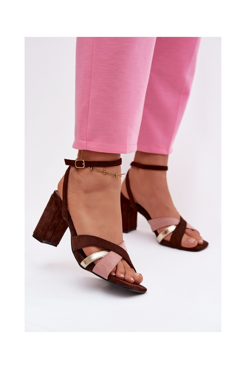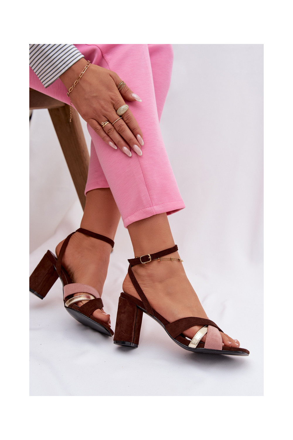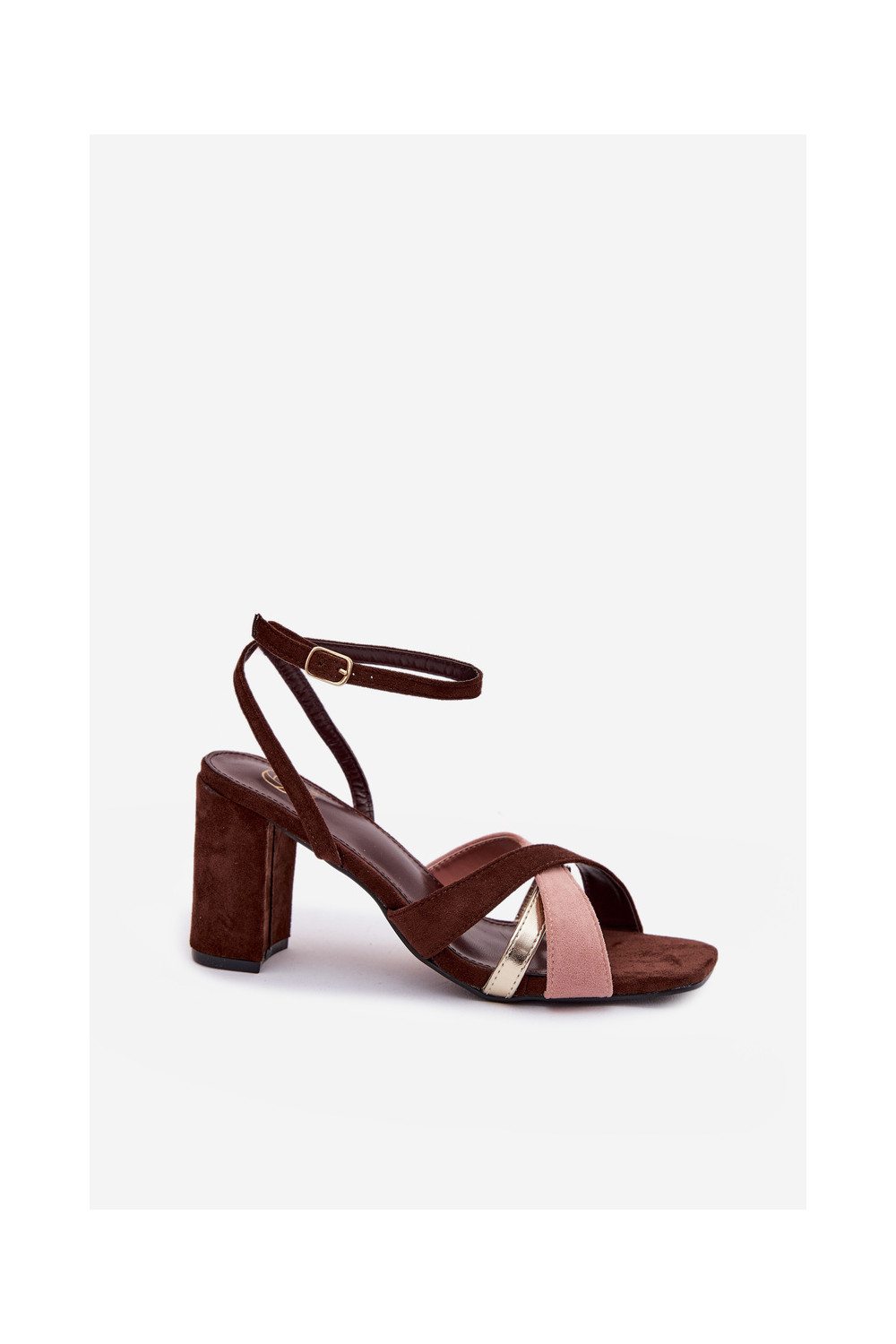 Sieviešu augstpapēžu sandaļi ar lentītēm no mākslīgā zamša, šokolādes krāsas Karilora
